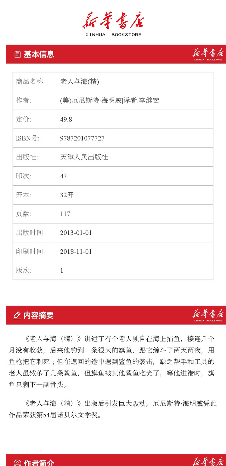 【新华书店旗舰店官网】正版 老人与海(精) 新老版本随机发货
