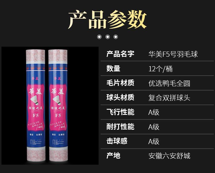 华美F5全圆羽毛球飞行稳定耐打手感好正品球馆训练比赛用球12只包邮