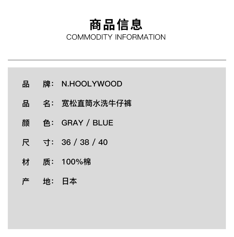 N.HOOLYWOOD DENIM PANTS 10oz宽松直筒水洗牛仔裤