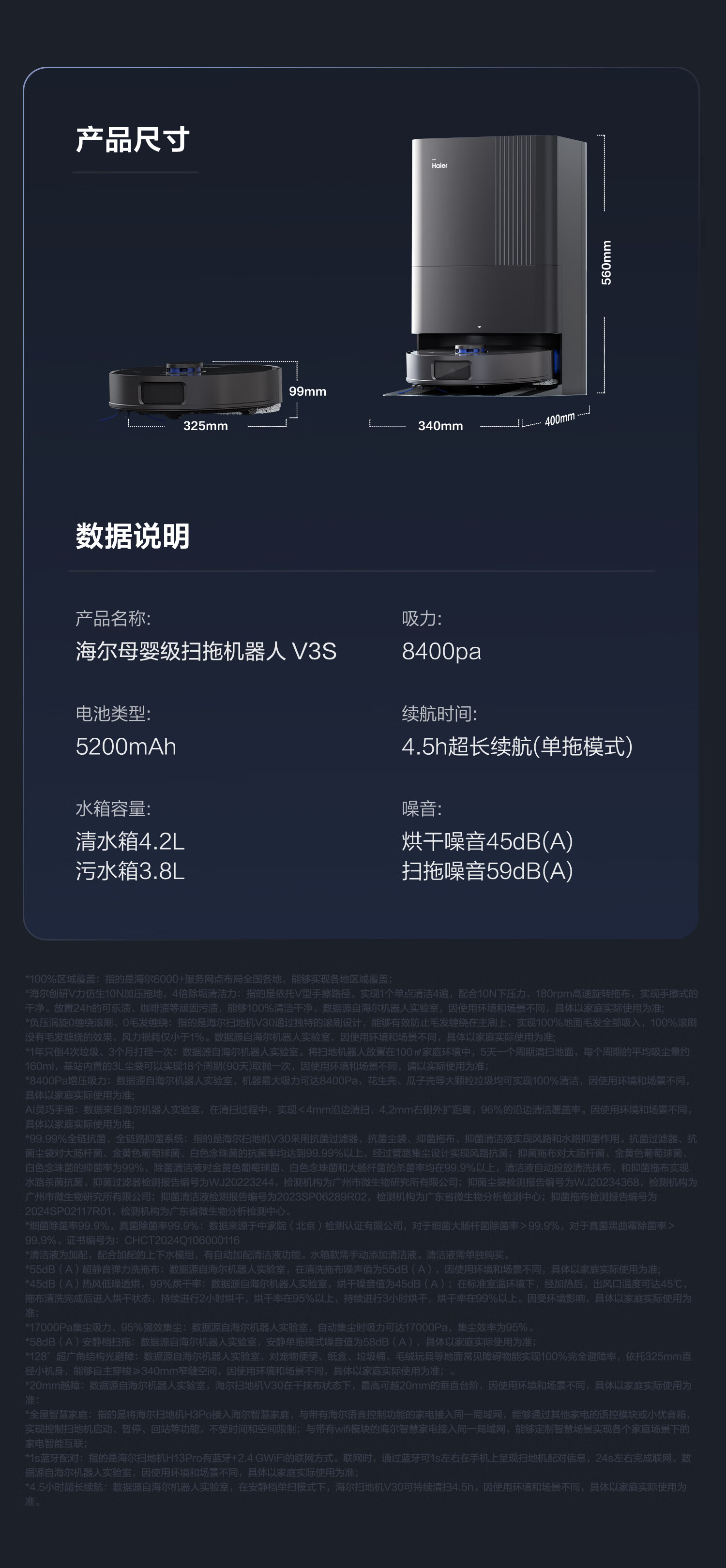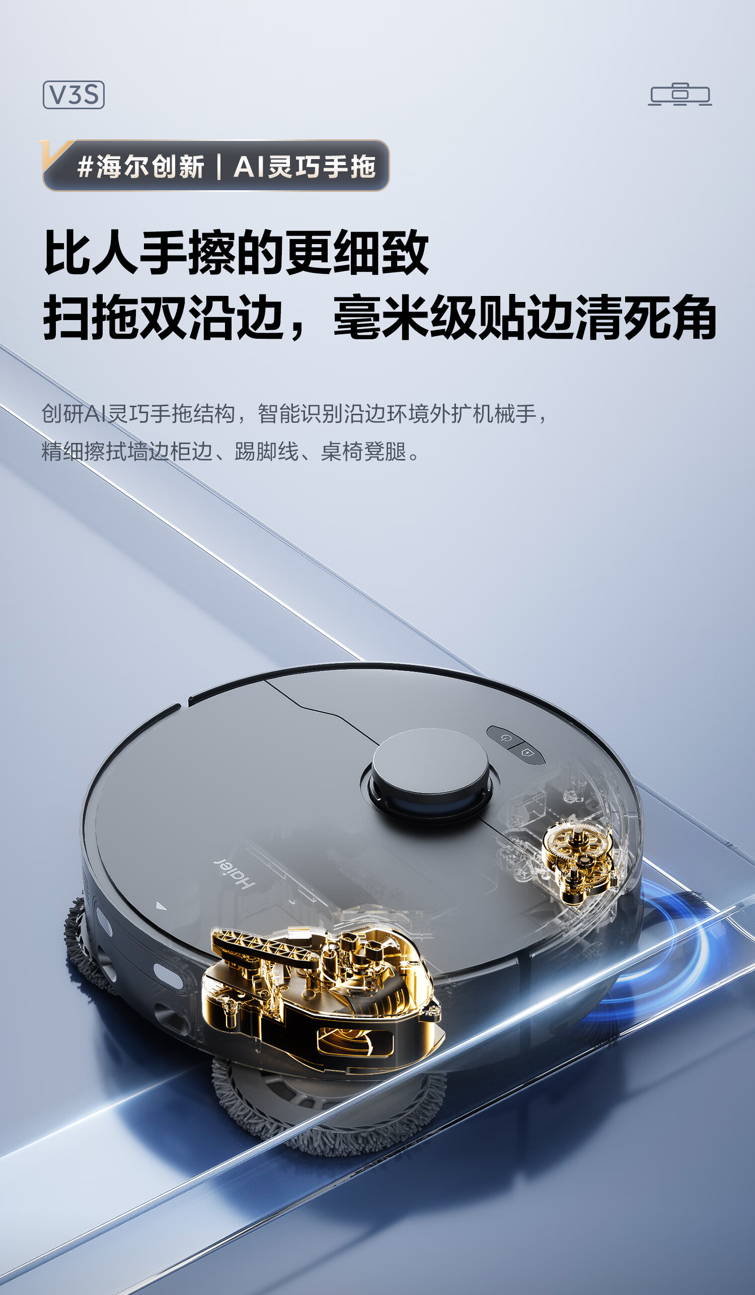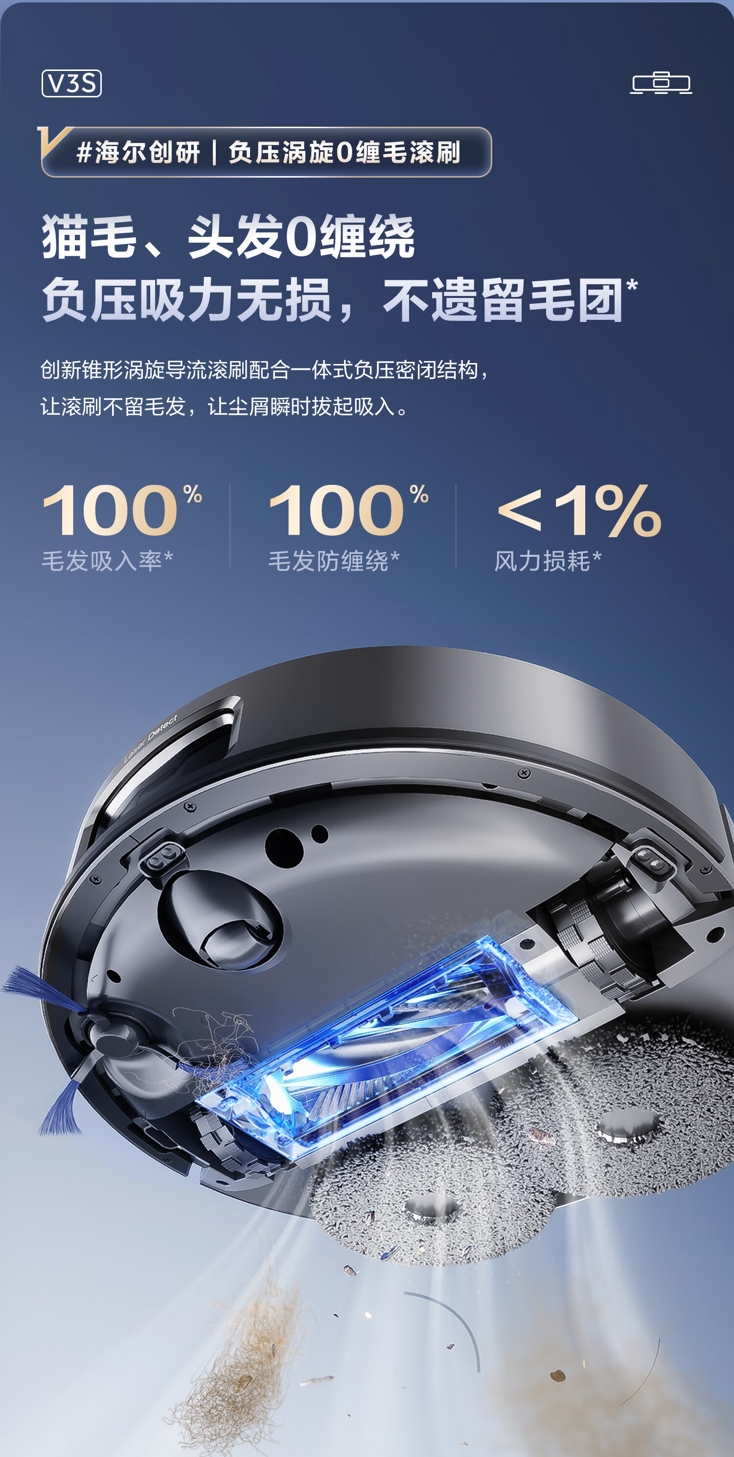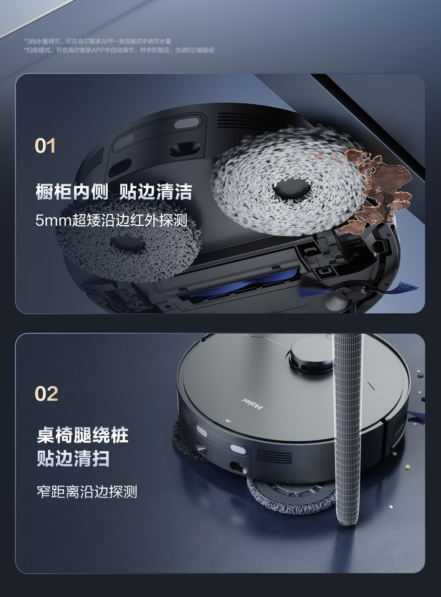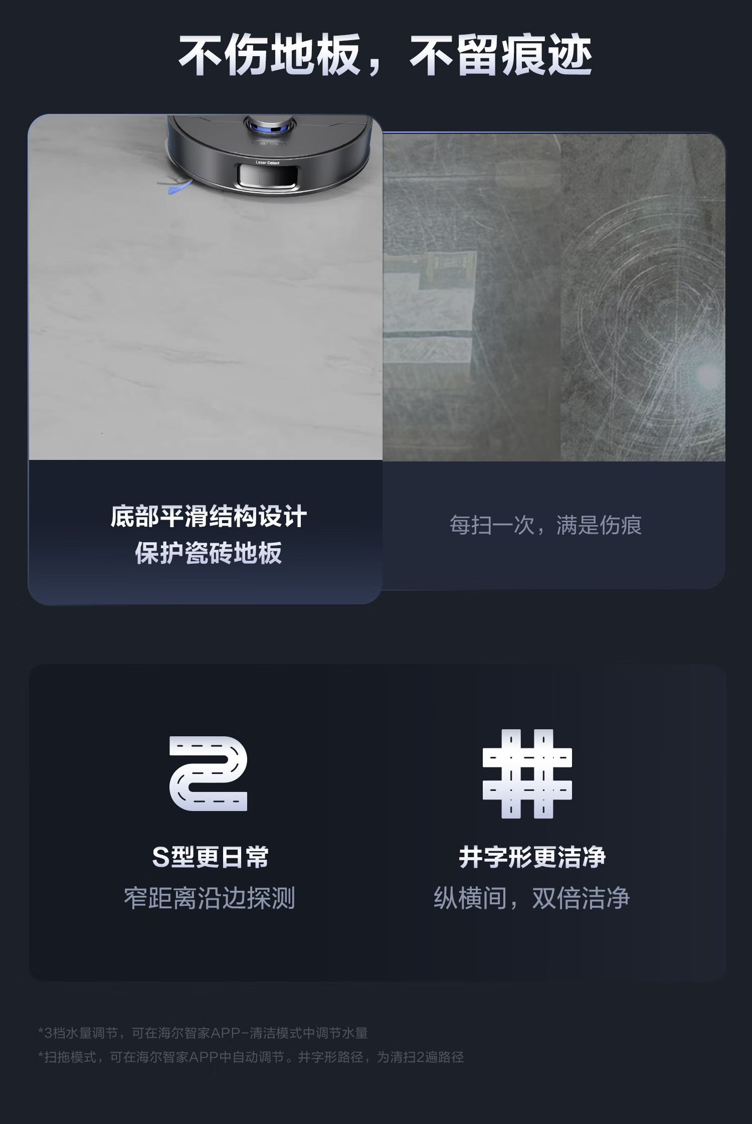 海尔V3S扫地机器人 热风烘干 加压搓洗 LDS激光导航0缠毛滚刷 母婴级除菌智能家用全自动扫吸拖一体机 【智能上下水版】博卡灰V3S+上下水组件