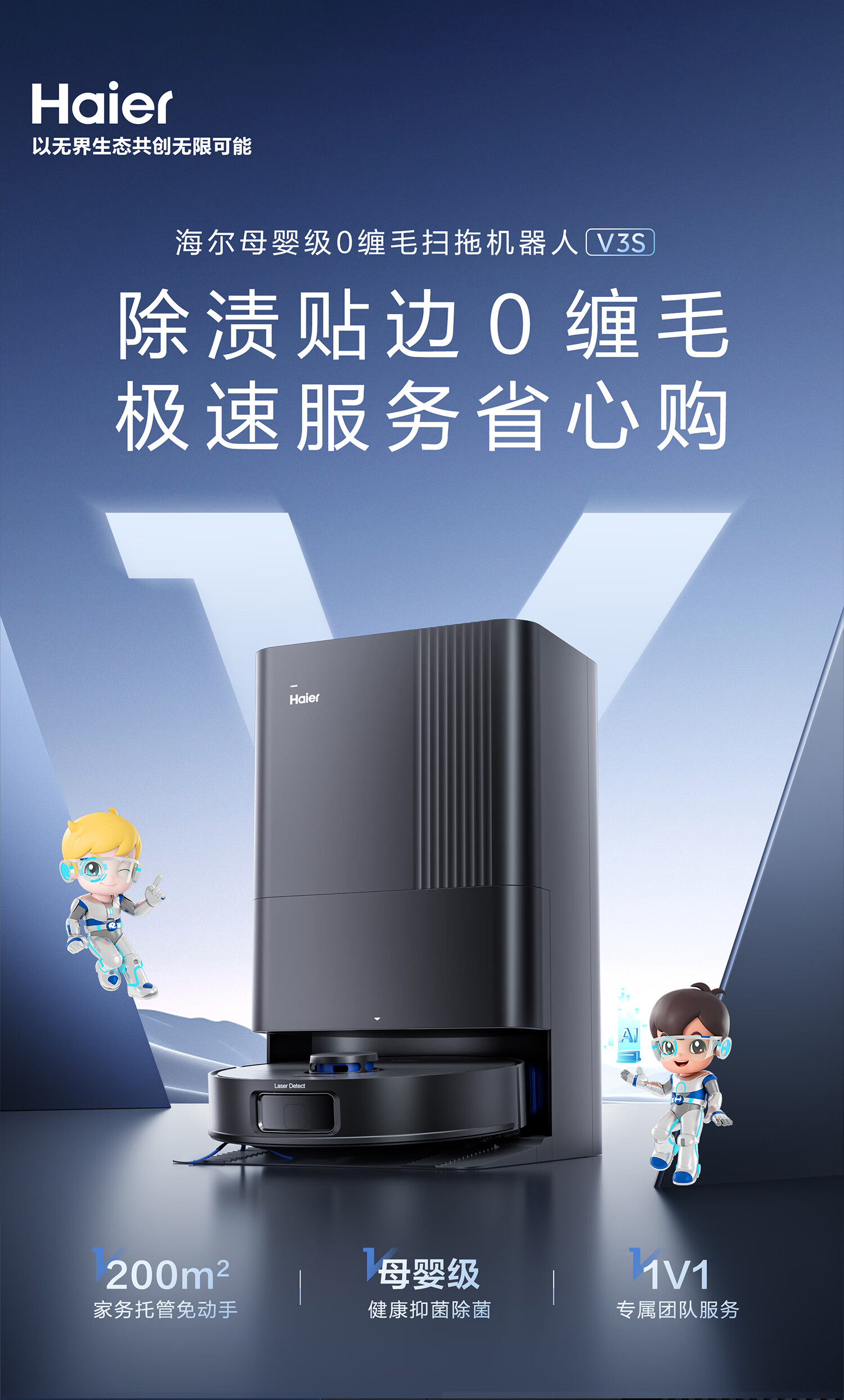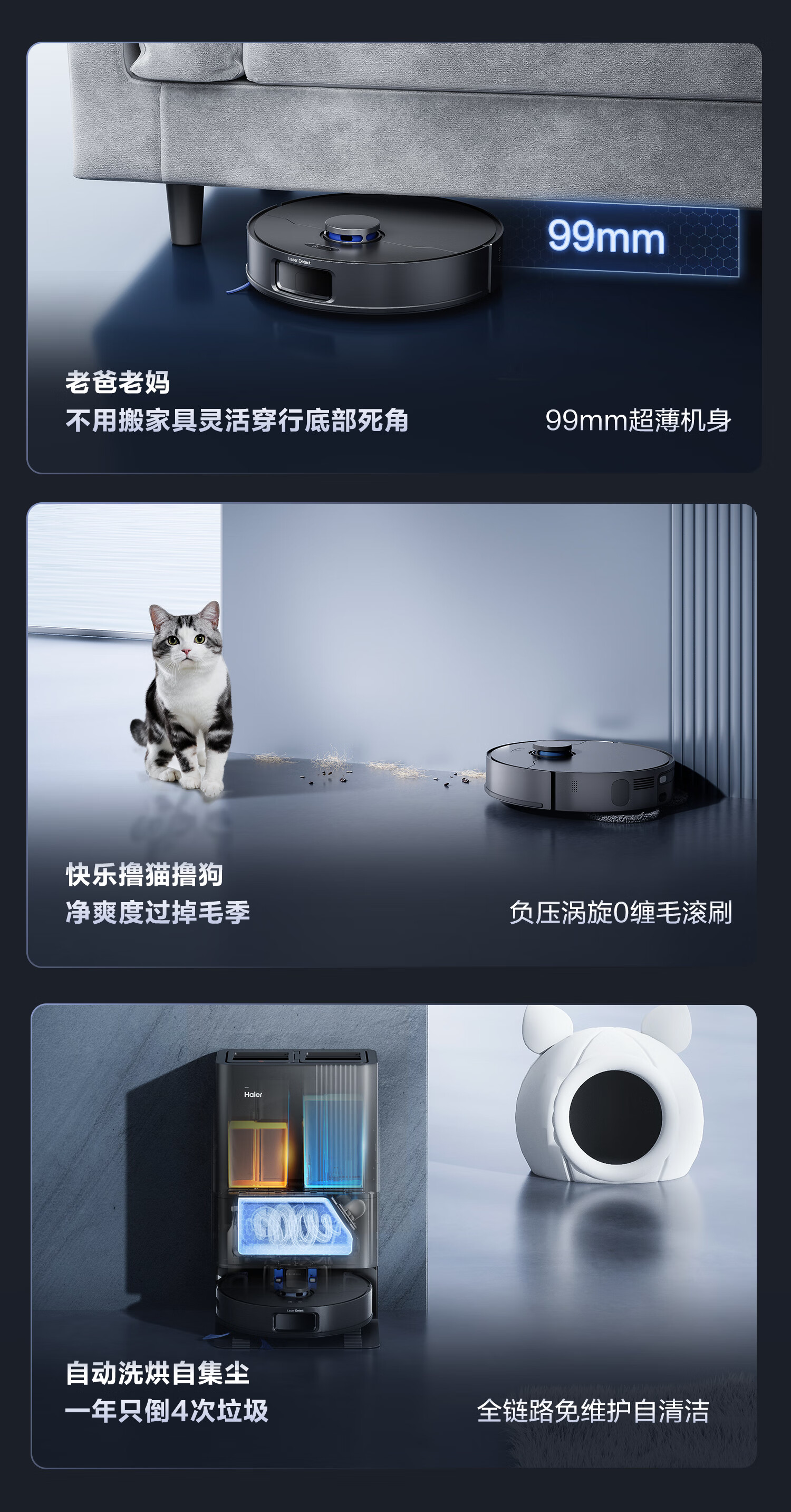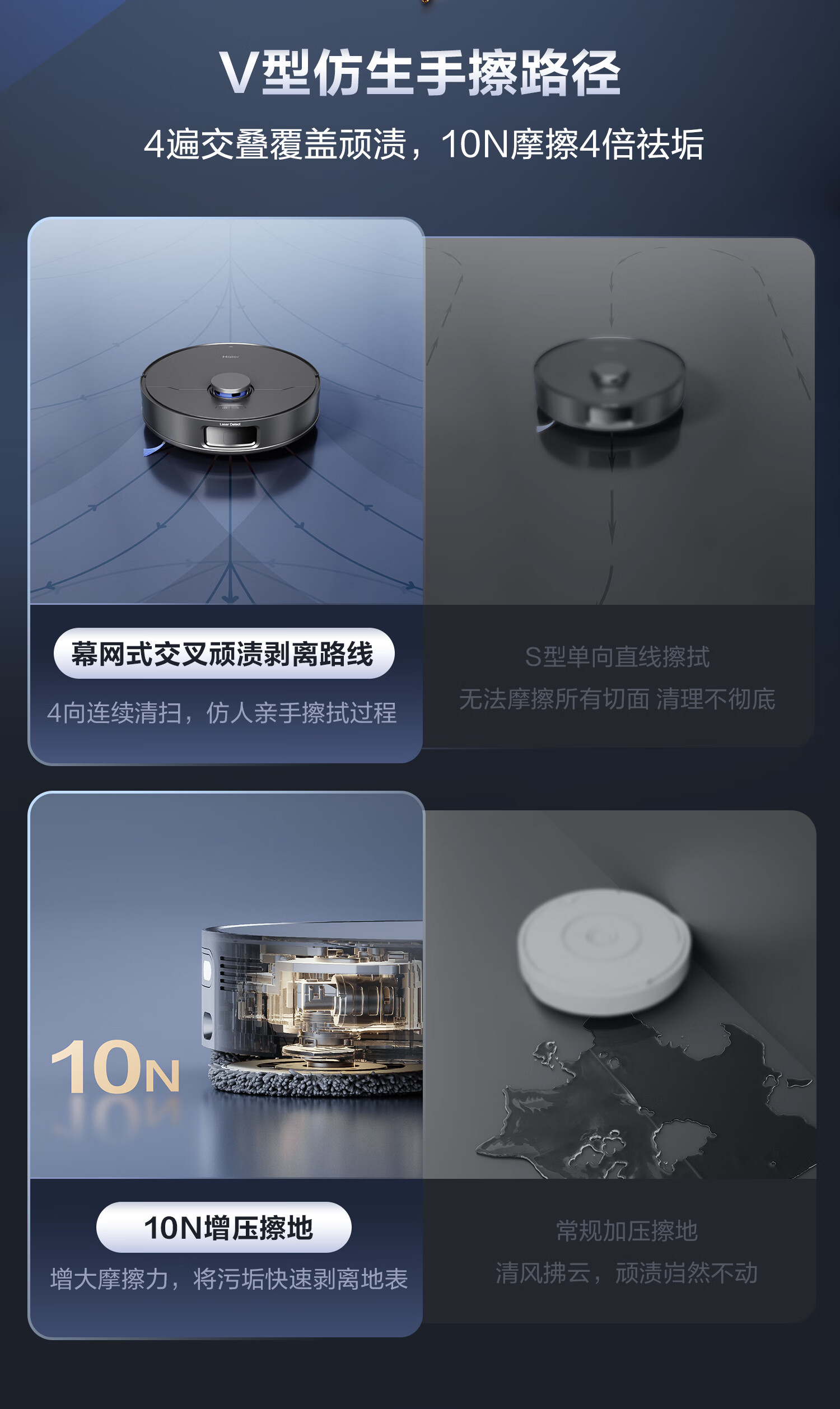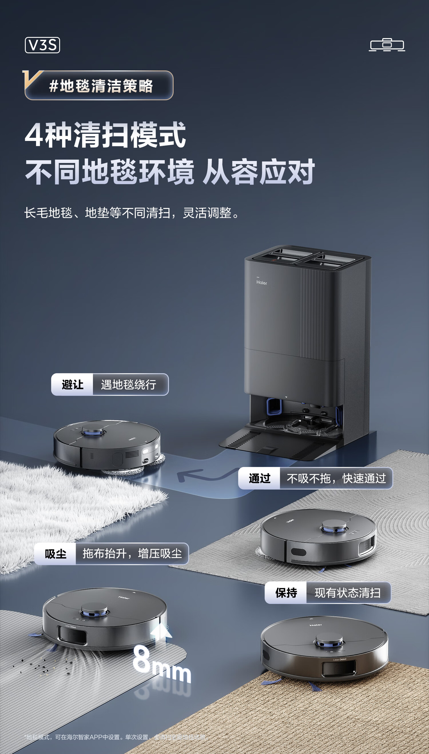 海尔V3S扫地机器人 热风烘干 加压搓洗 LDS激光导航0缠毛滚刷 母婴级除菌智能家用全自动扫吸拖一体机 【智能上下水版】博卡灰V3S+上下水组件