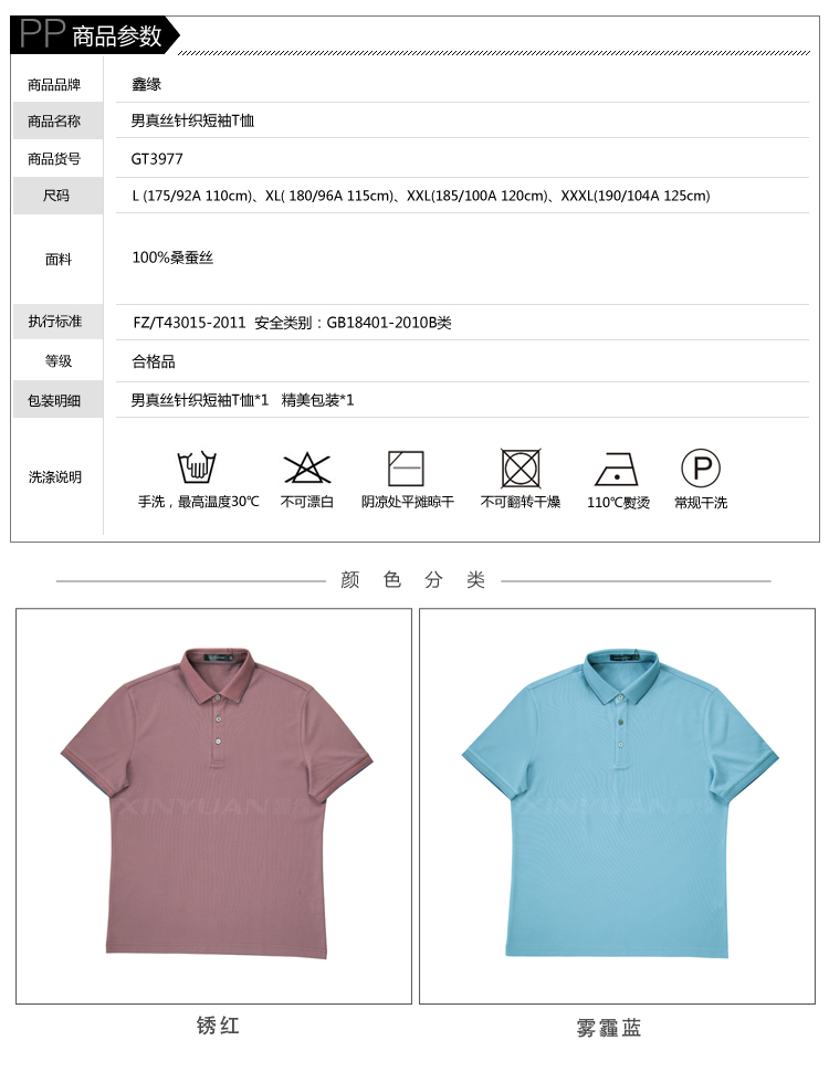鑫缘 男真丝针织短袖T恤 GT3977