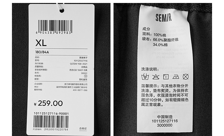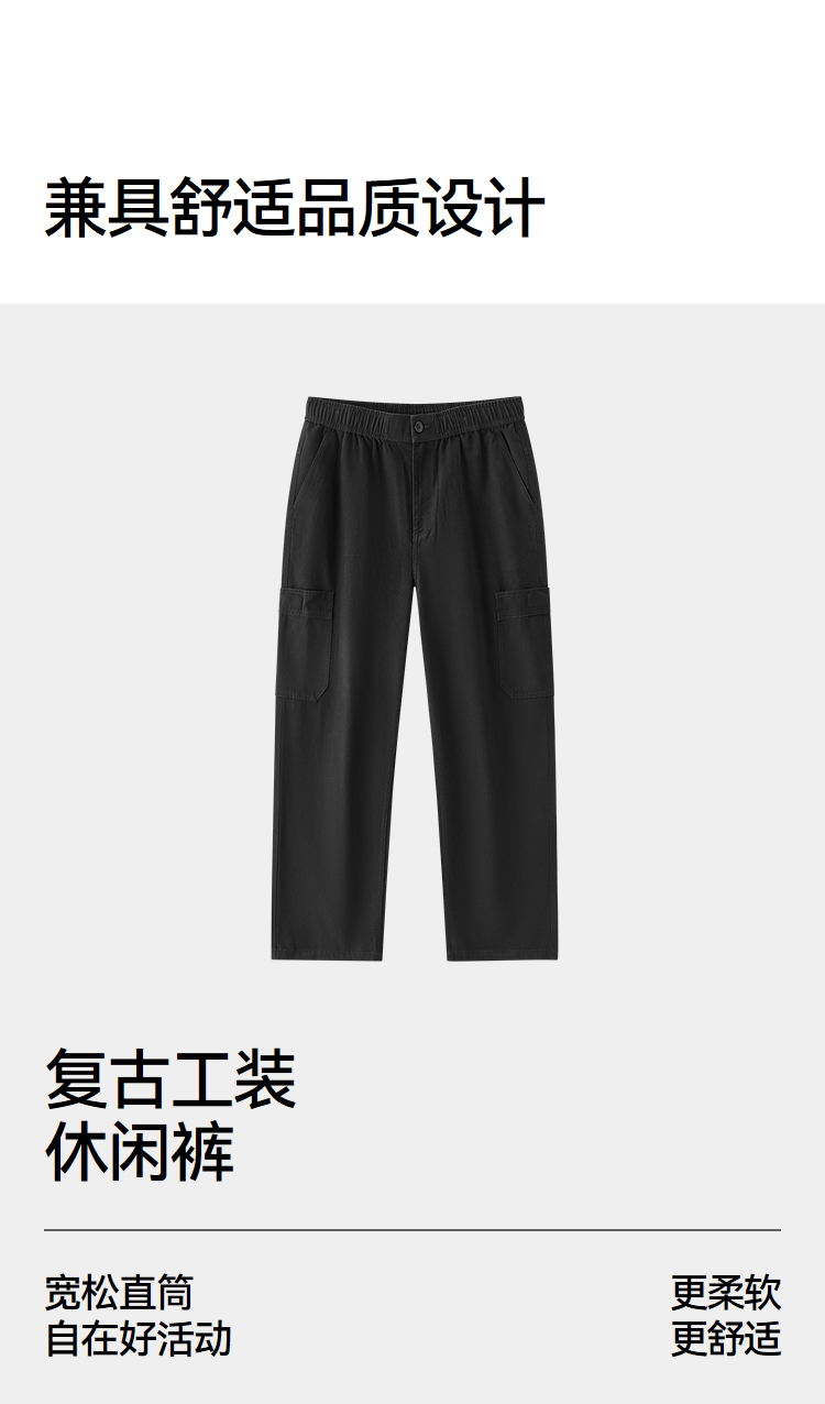 森马休闲裤男春季宽松直筒裤复古工装水洗工艺裤时尚百搭柔软舒适