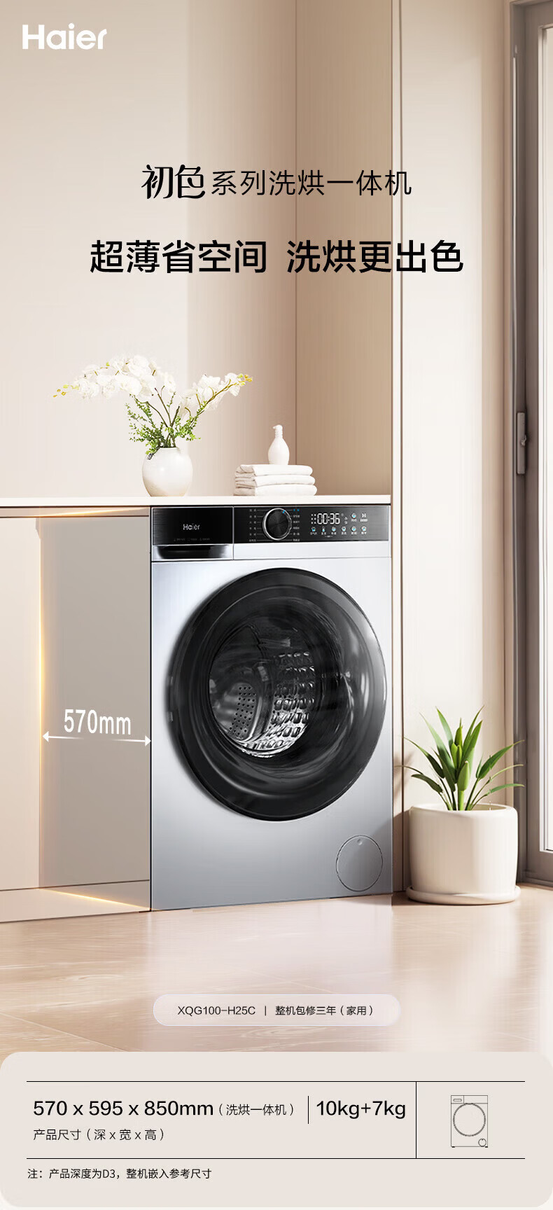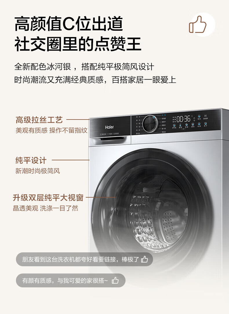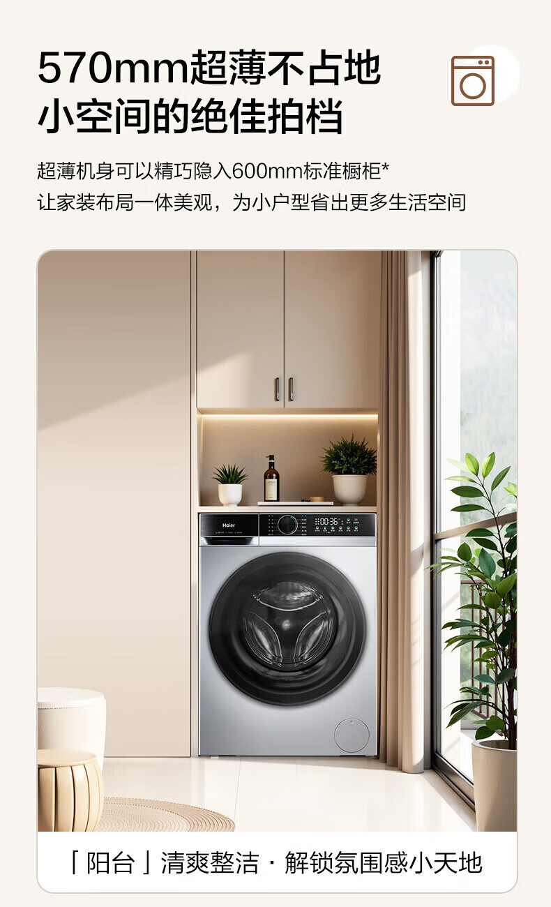 海尔(Haier)XQG100-H25C全自动家用滚筒洗烘一体智能洗衣机懒人超薄家用大容量10公斤