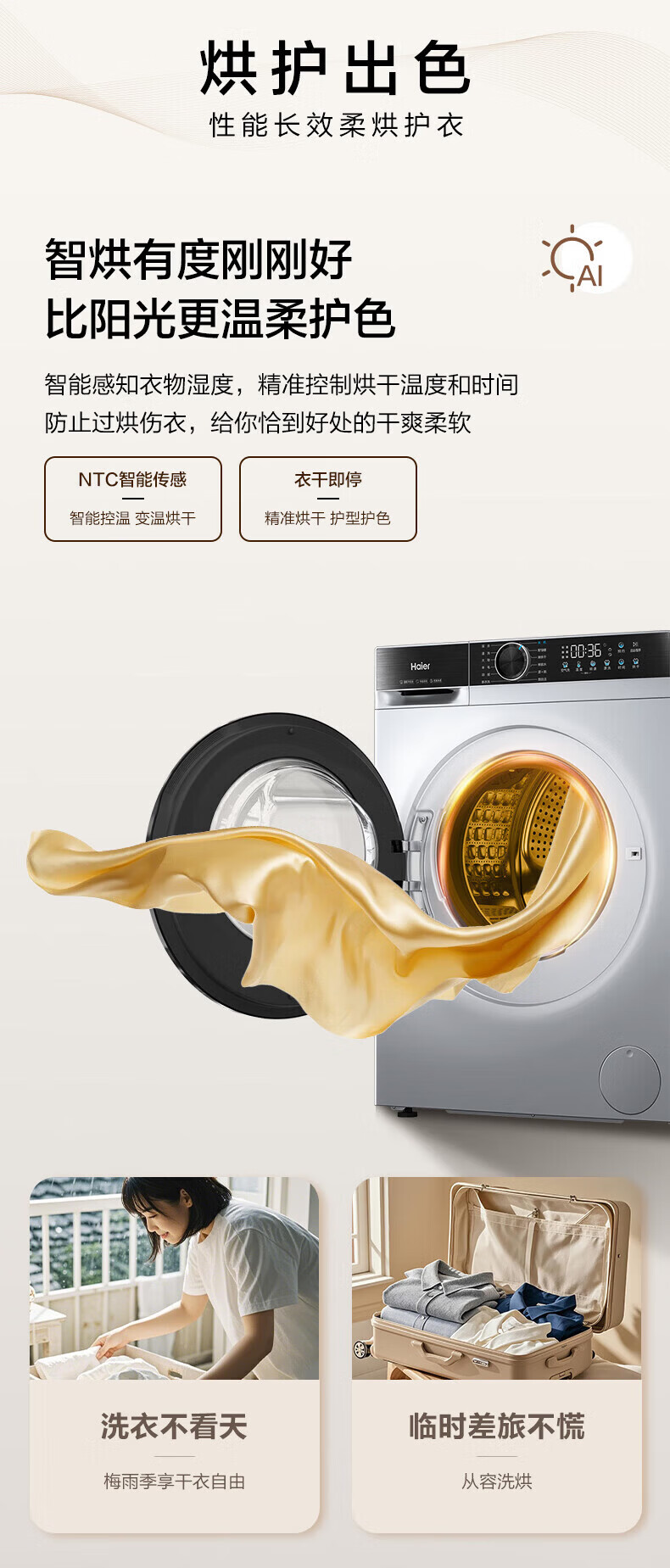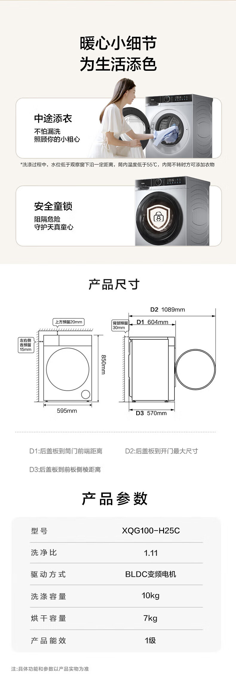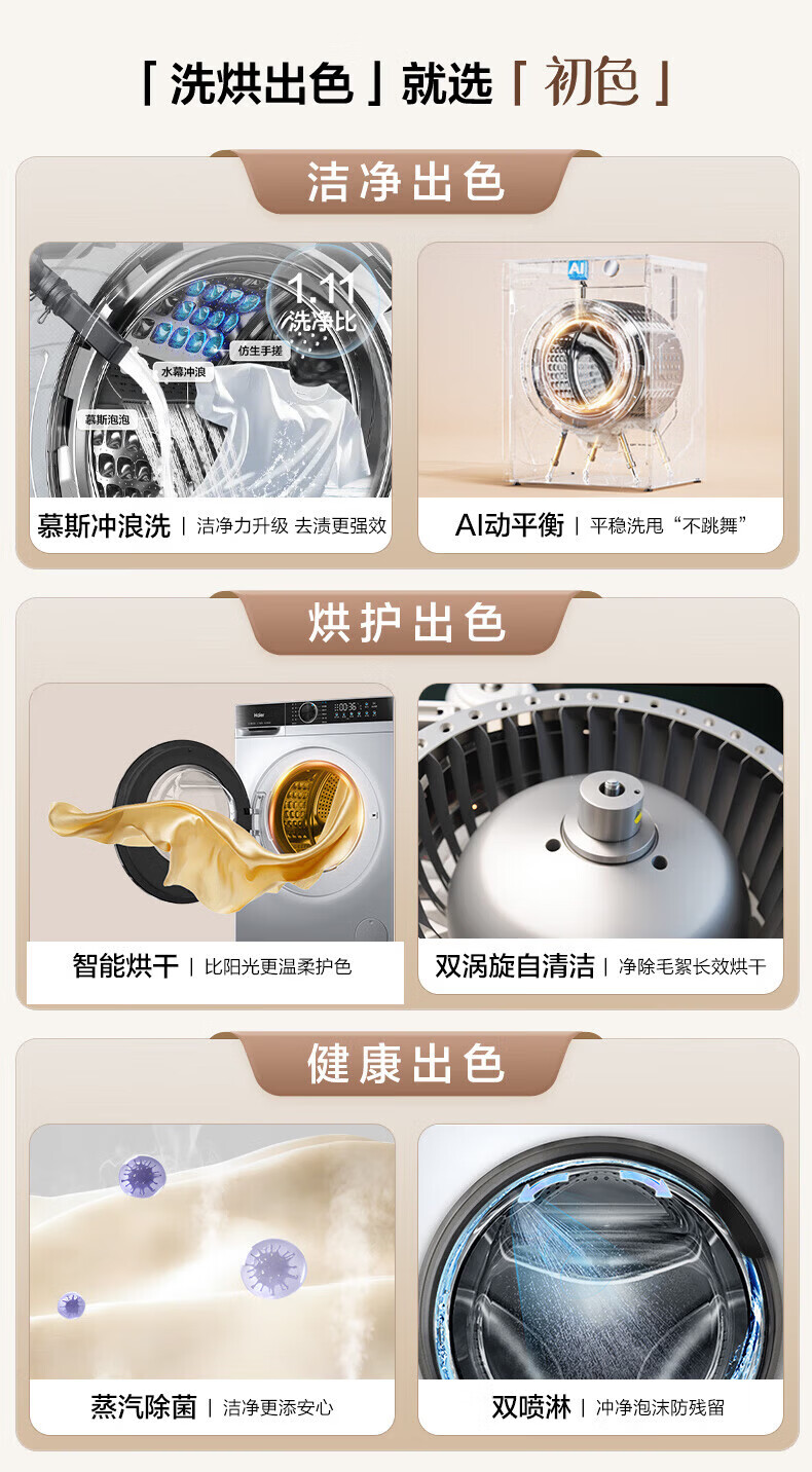 海尔(Haier)XQG100-H25C全自动家用滚筒洗烘一体智能洗衣机懒人超薄家用大容量10公斤