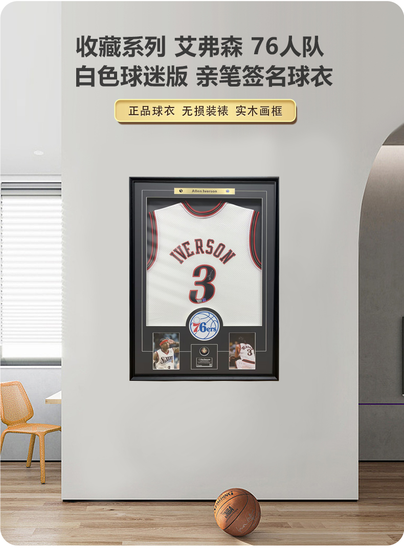 收藏系列 艾弗森 76人队 白色球迷版 亲笔签名球衣