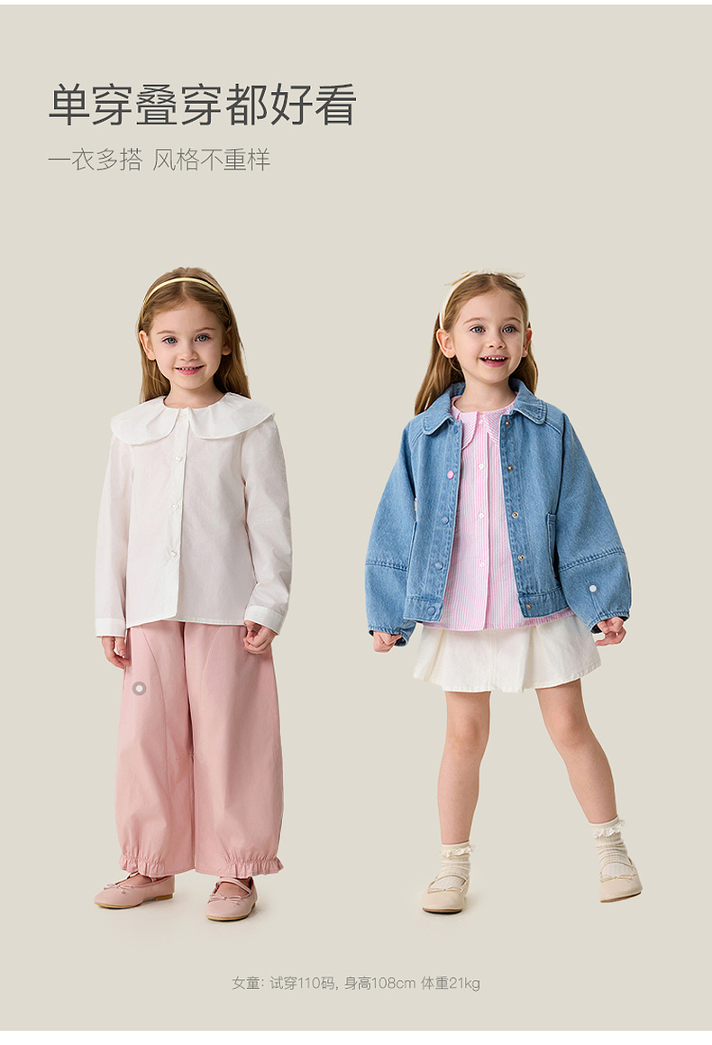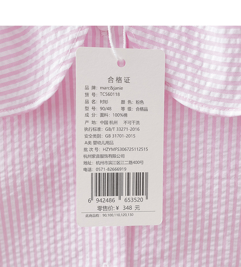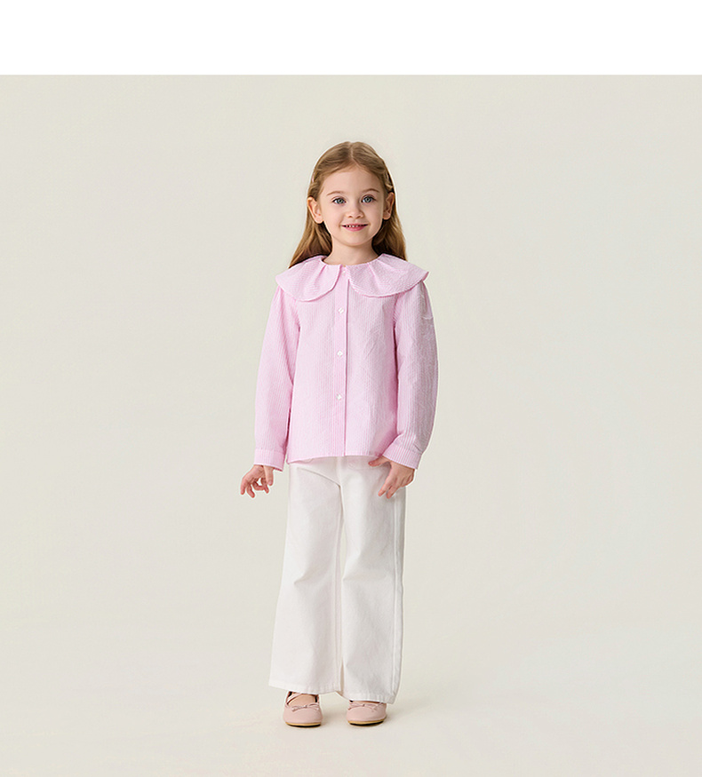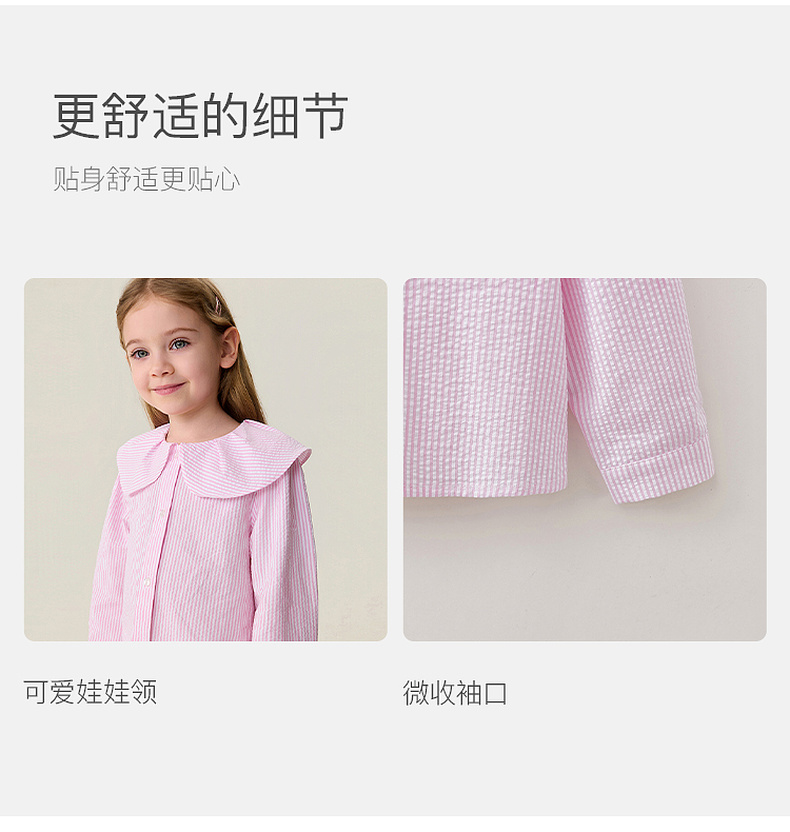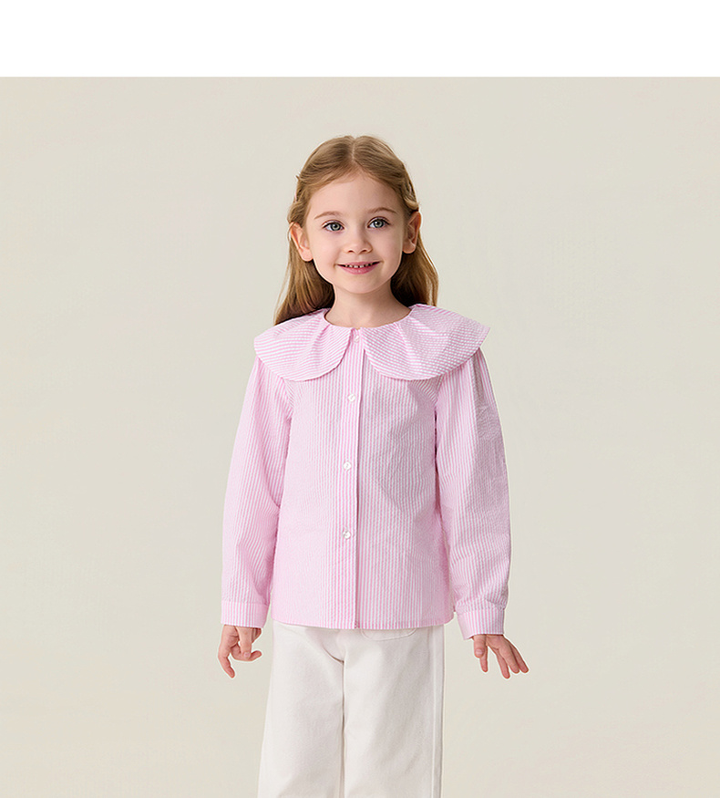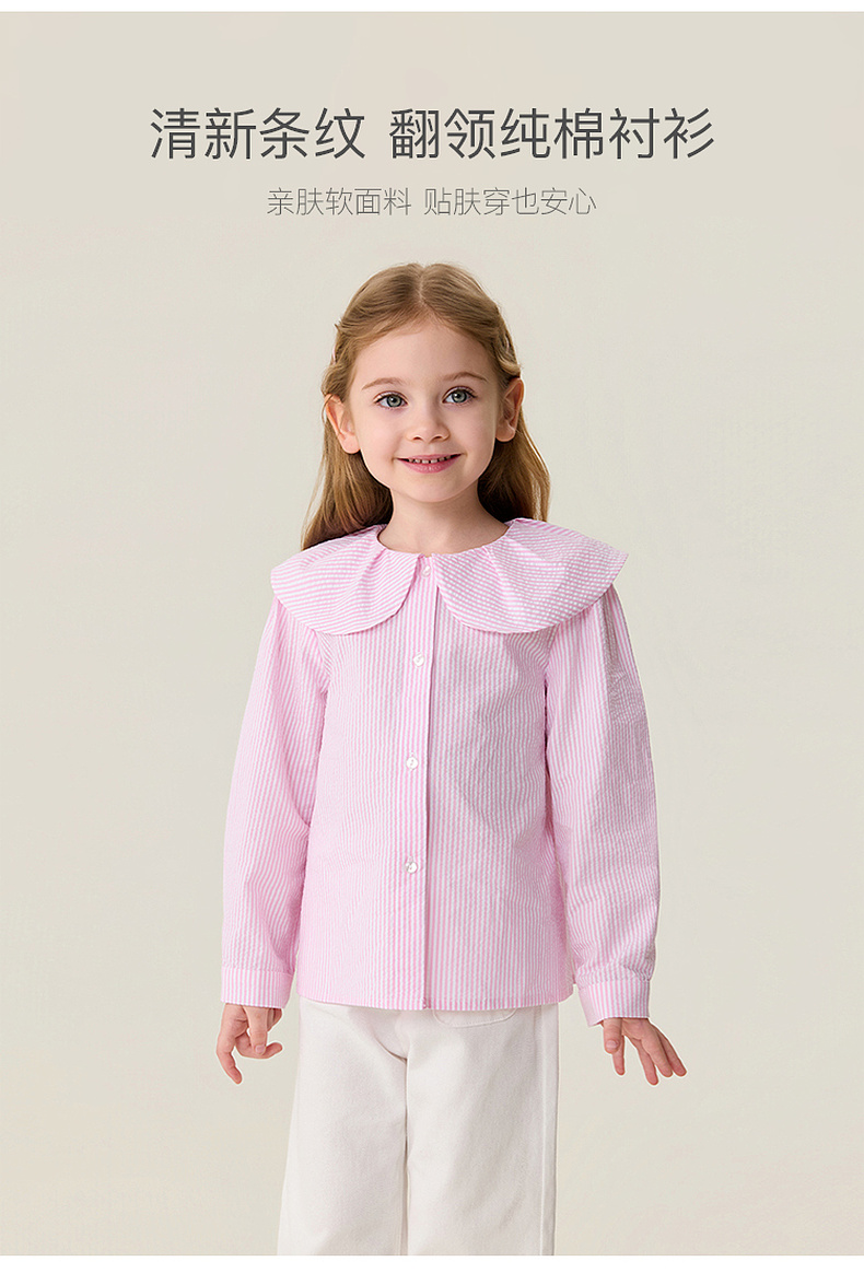 马克珍妮萌趣小熊女童翻领条纹衬衫2026年春装新款560118