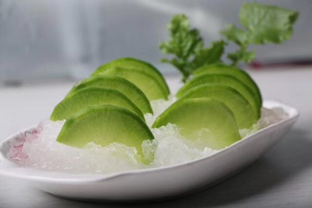 颜色翠绿,一口嘎嘣脆,鲜嫩、多汁、无渣,富含多种营养元素,口感赛鸭梨;