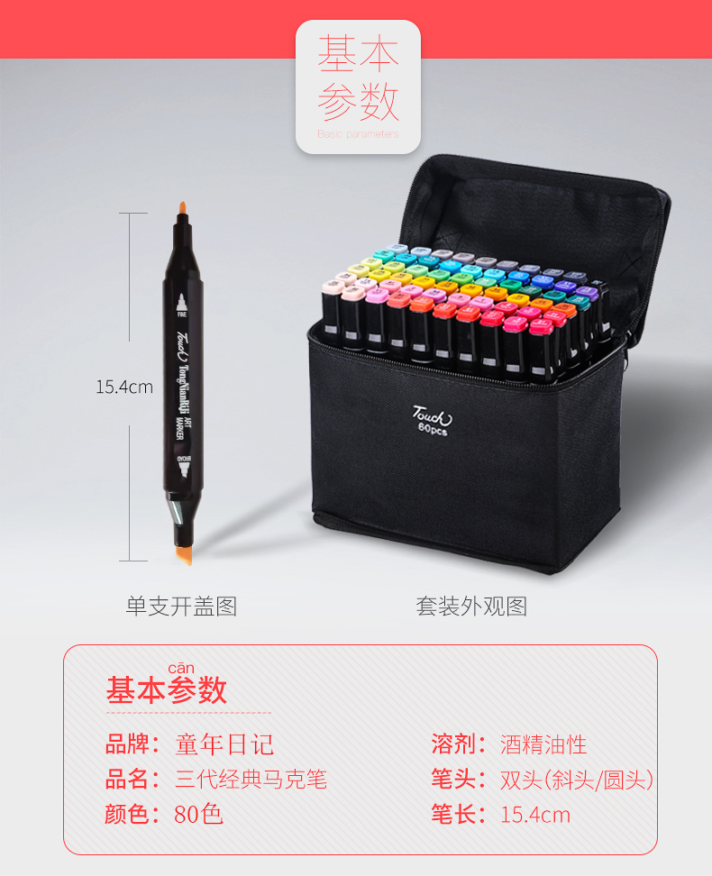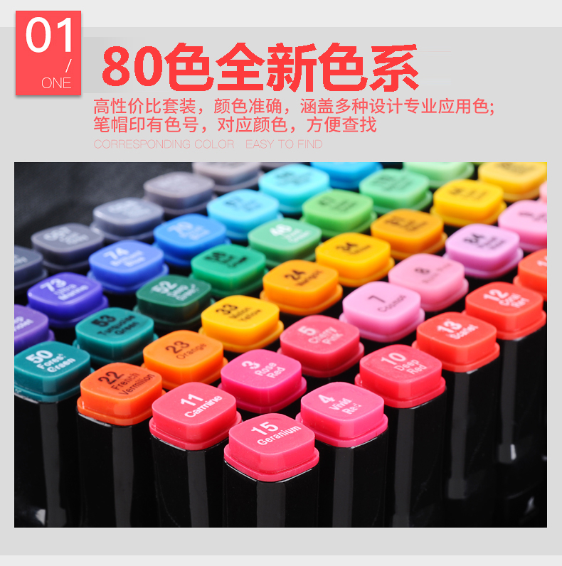 【80色马克笔特惠装】双头黑色马克笔80色套装小学生绘画美术用品