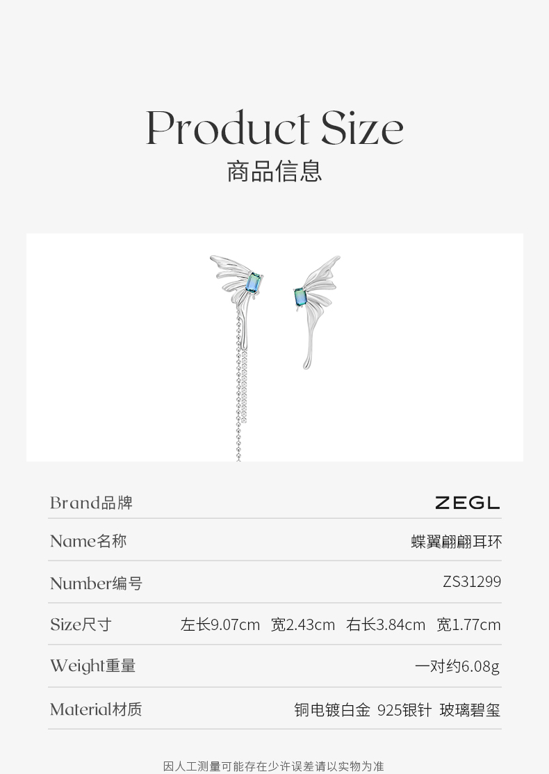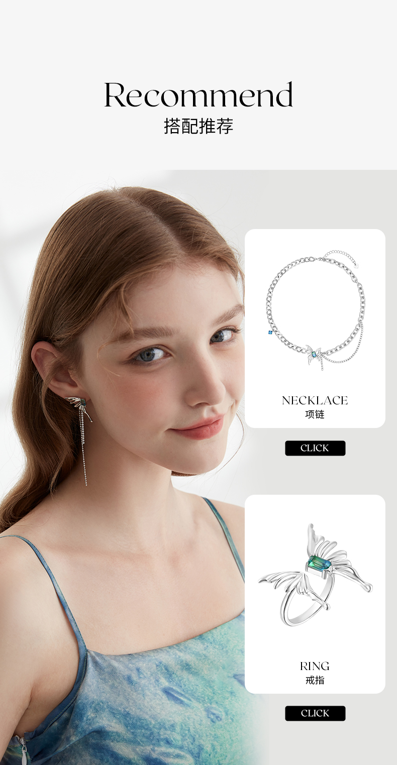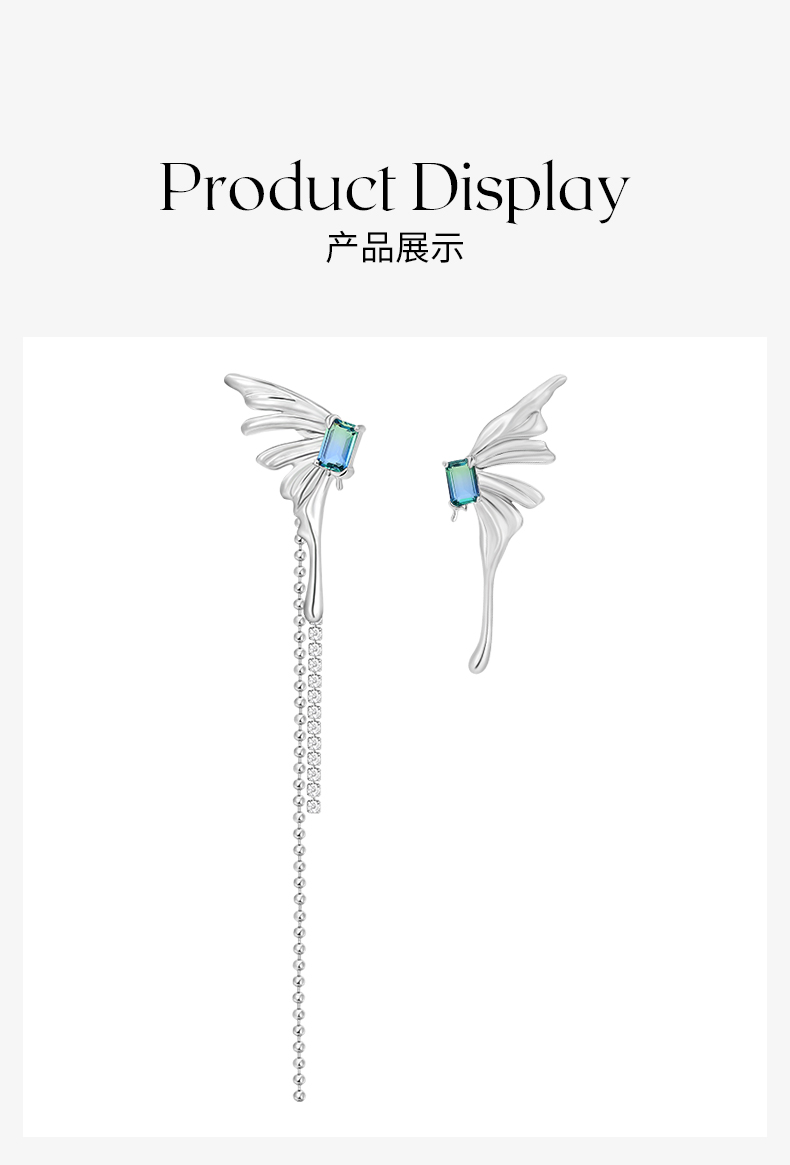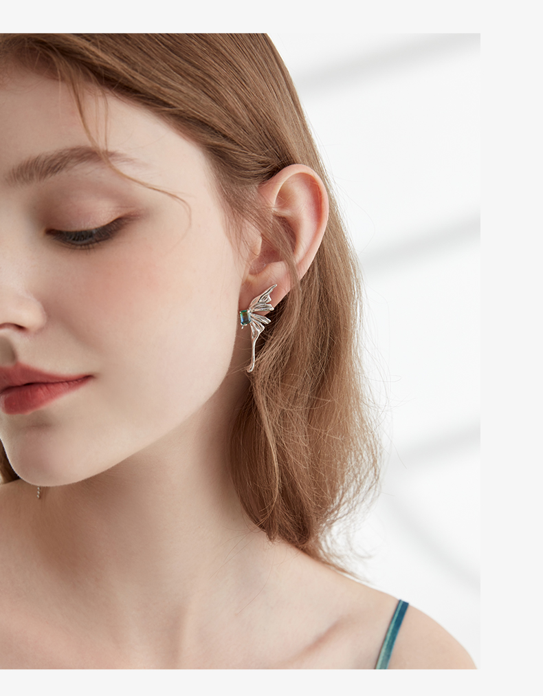 ZEGL设计师浮生若梦系列液态蝴蝶耳环女夏设计感耳钉925银针耳饰