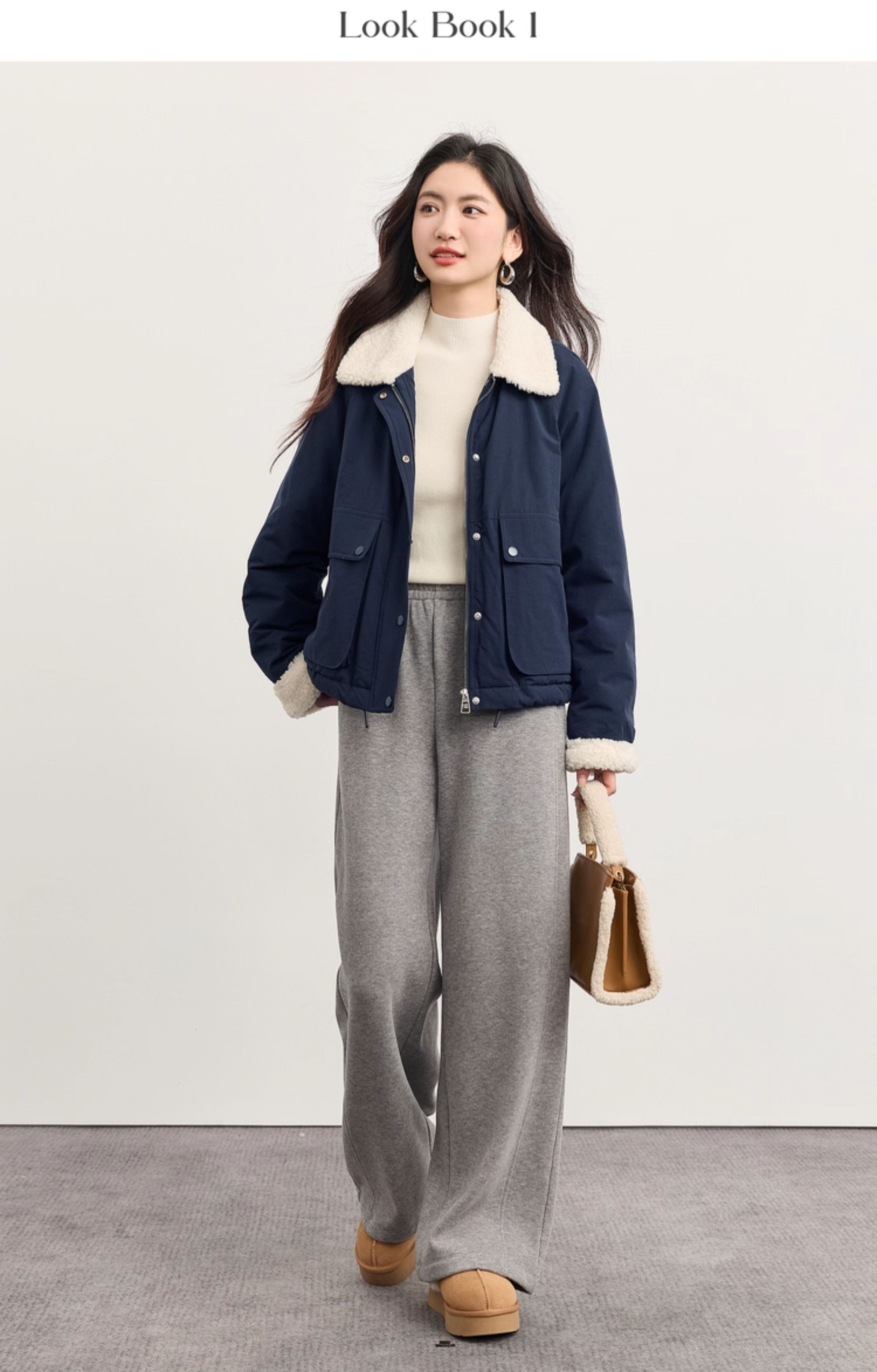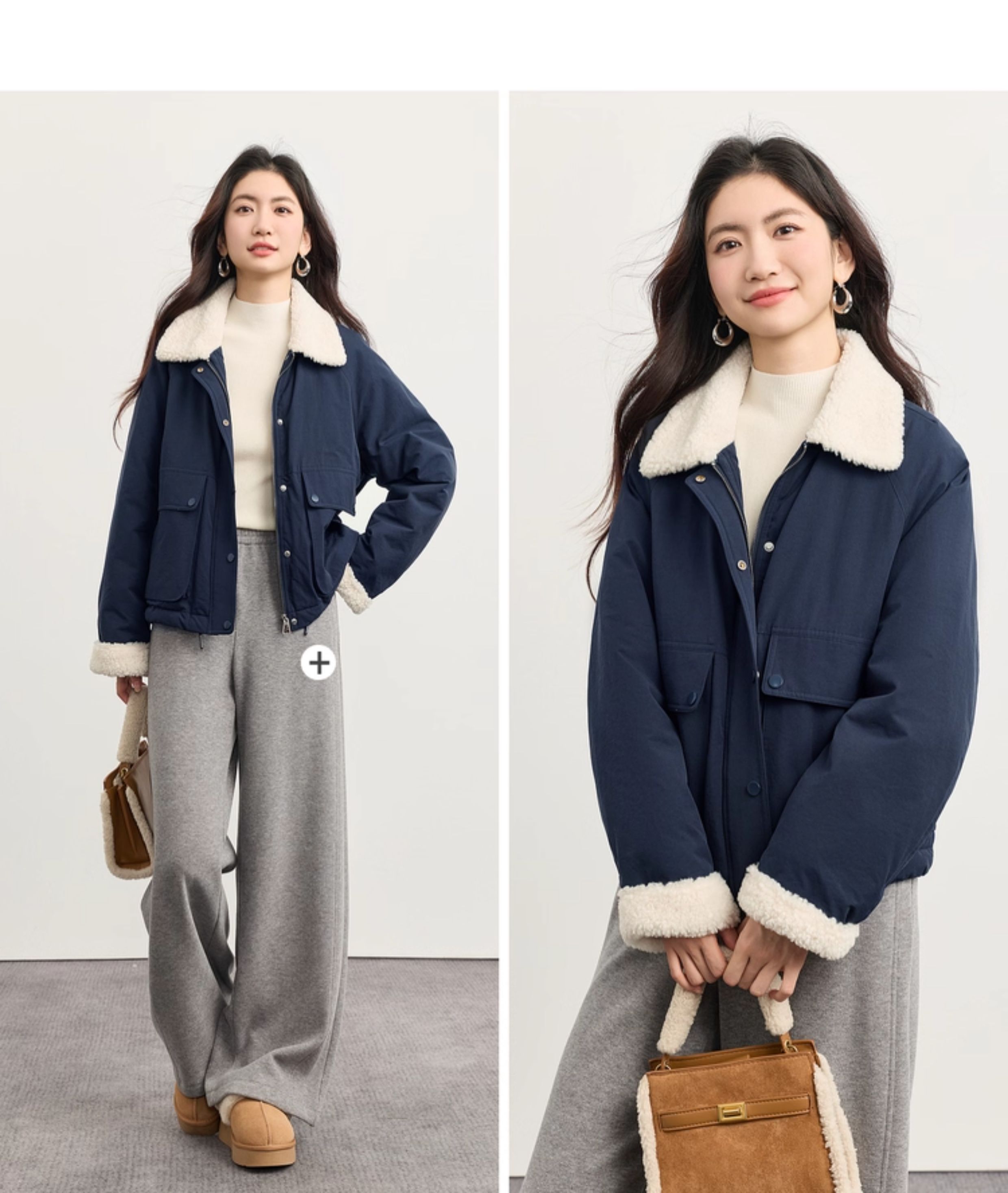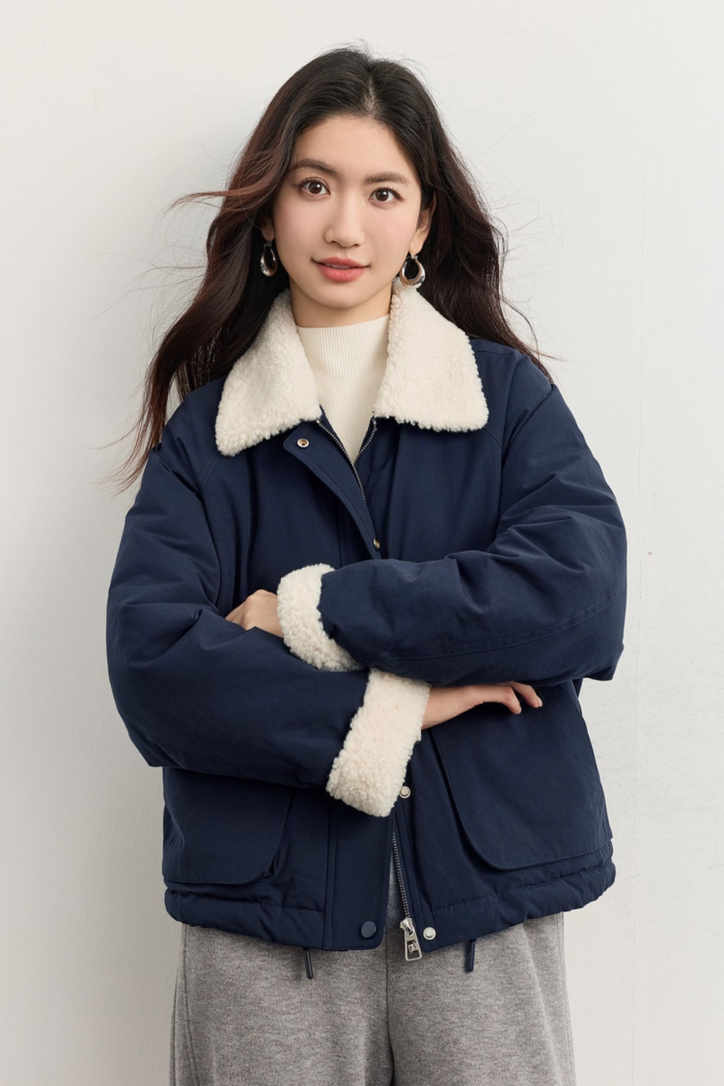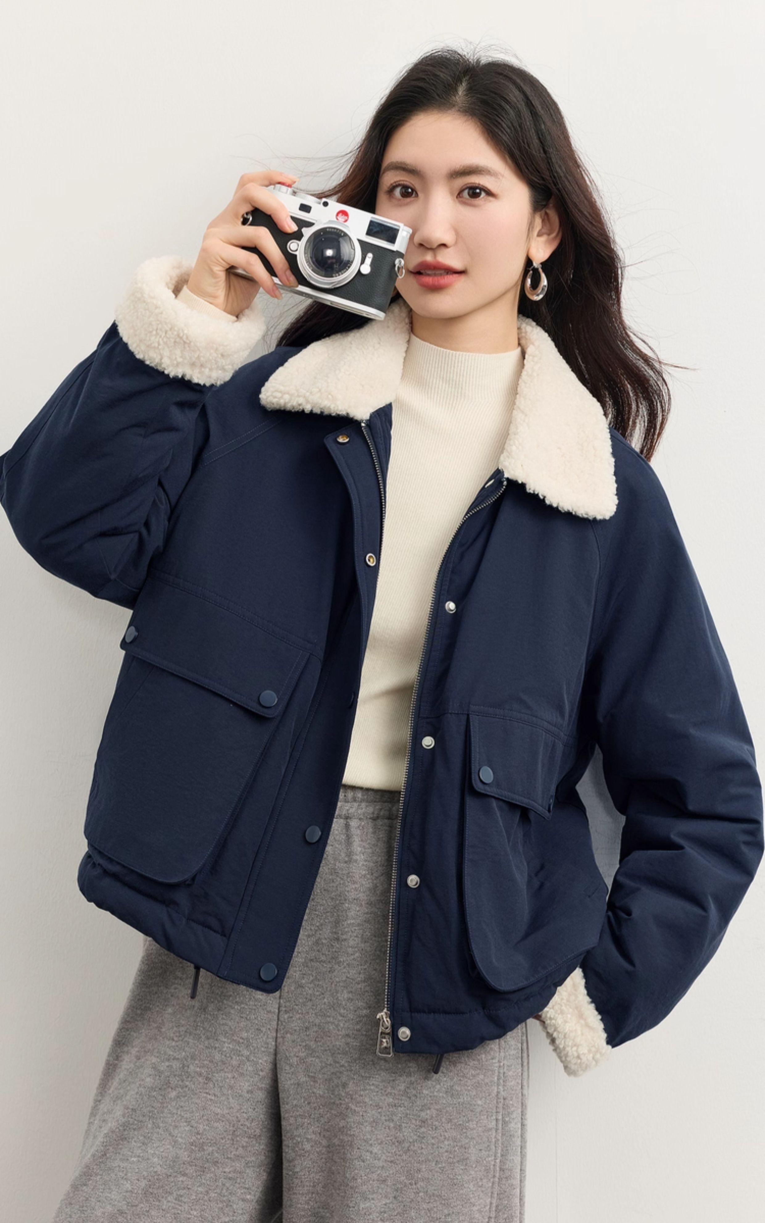 【年货节】熙世界工装巴恩风毛绒翻领羽绒服女冬2025新款大口袋白鸭绒短外套