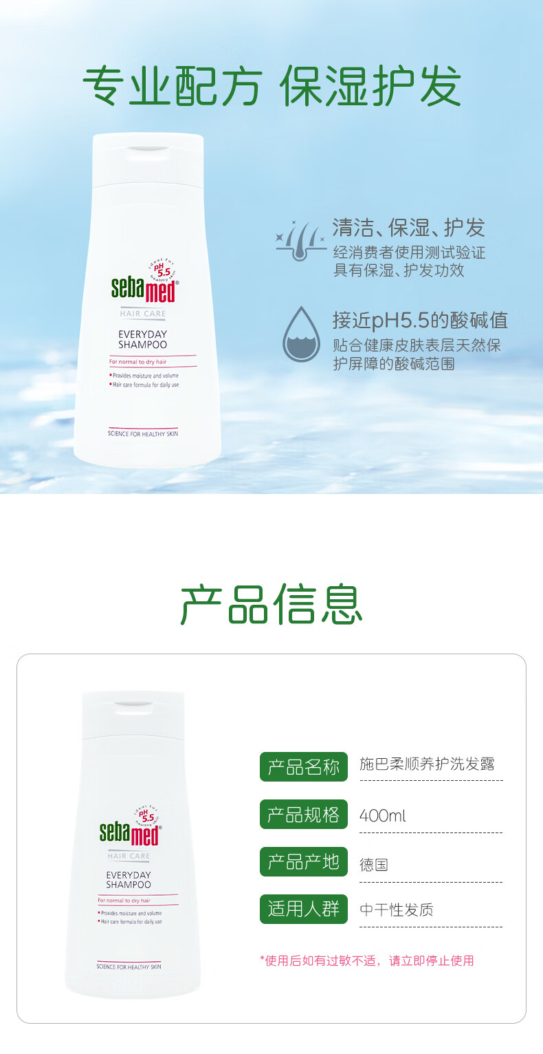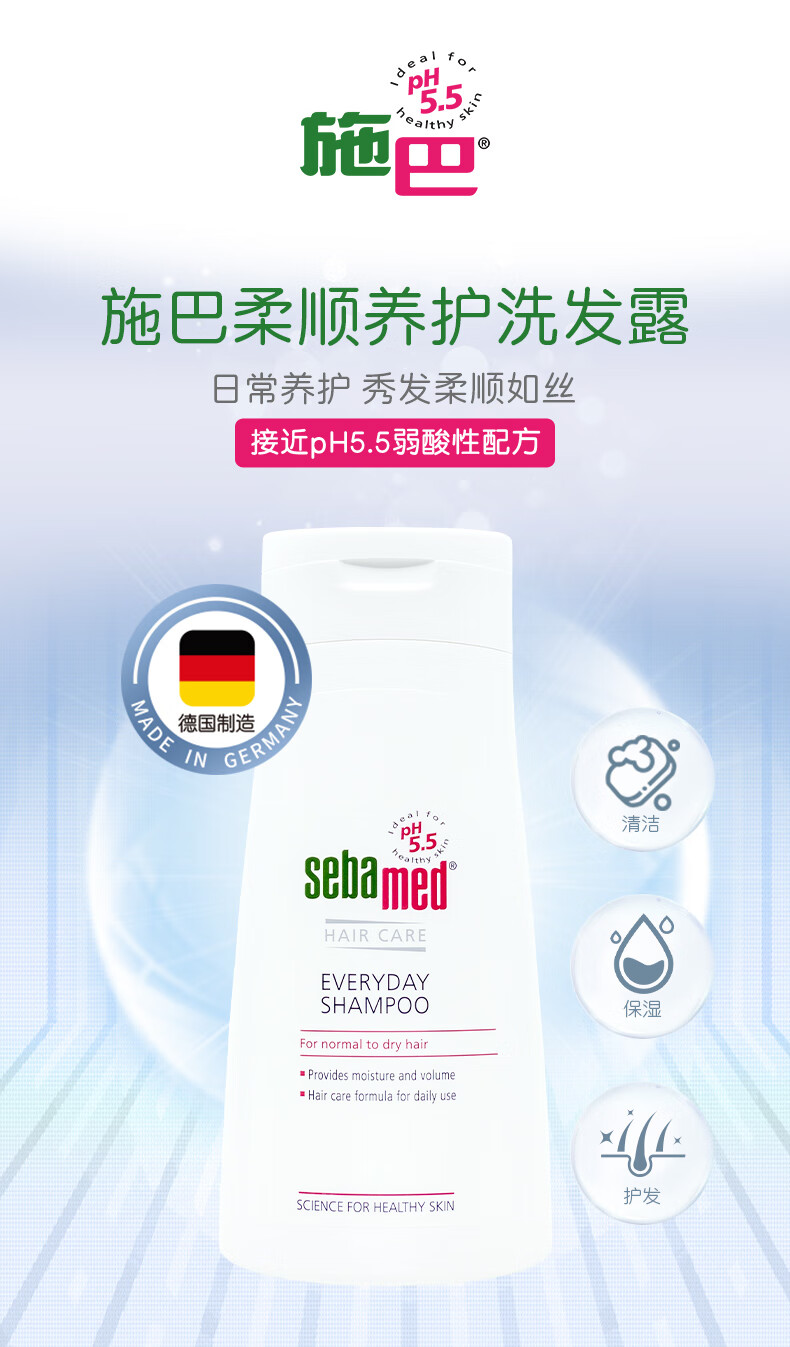 施巴(sebamed)柔顺洗发露400mL无硅油洗发水清爽弱酸性洗发液升级版