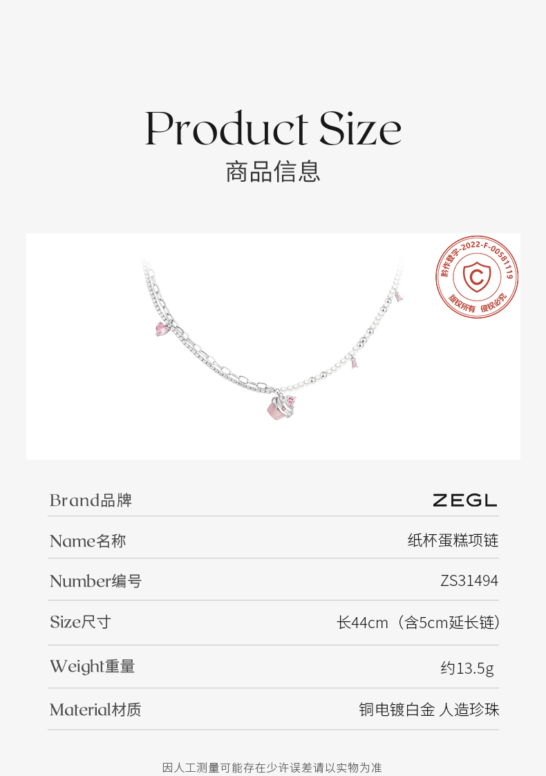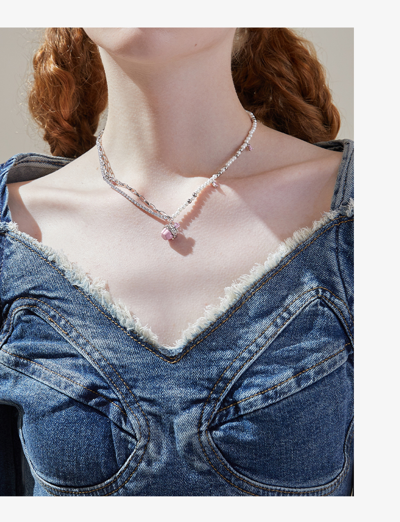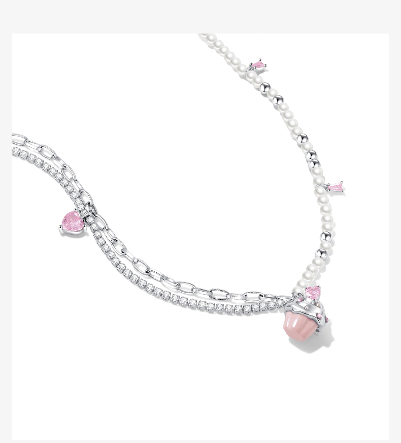 ZEGL设计师奶油少女系列纸杯蛋糕项链女高级感人造珍珠锁骨链配饰
