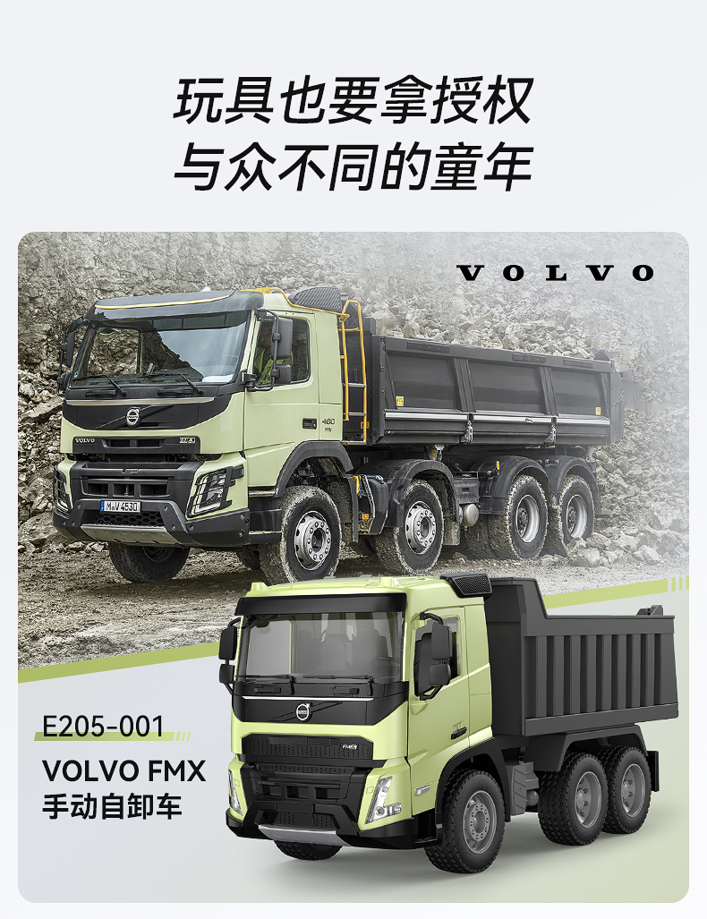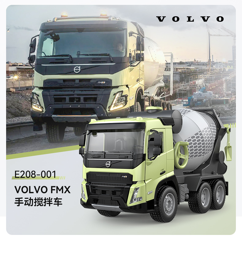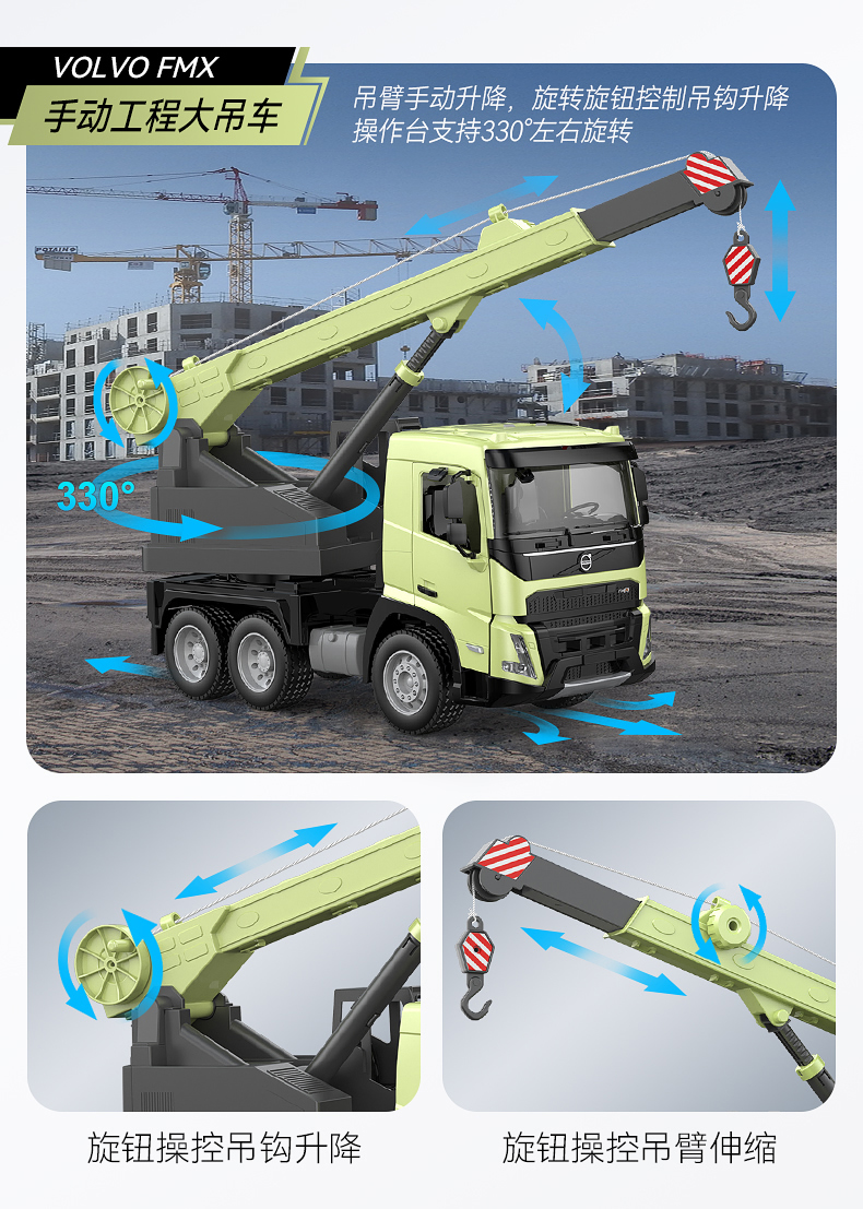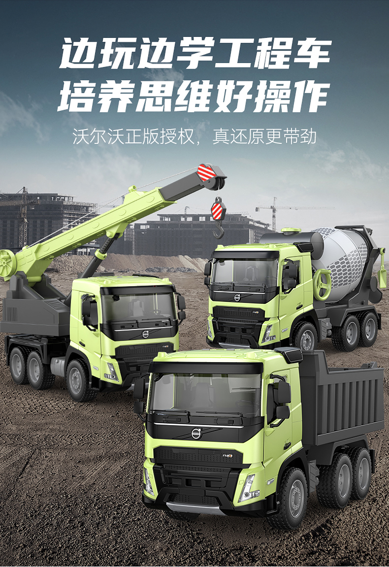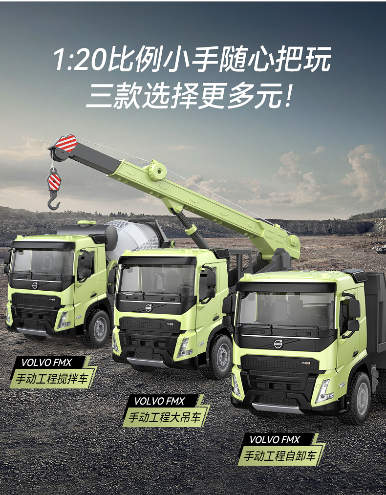【双鹰】VOLVO FMX 手动自卸车大吊车搅拌车(1:20)正版授权玩具手动自卸车搅拌车大吊车男孩儿童礼物