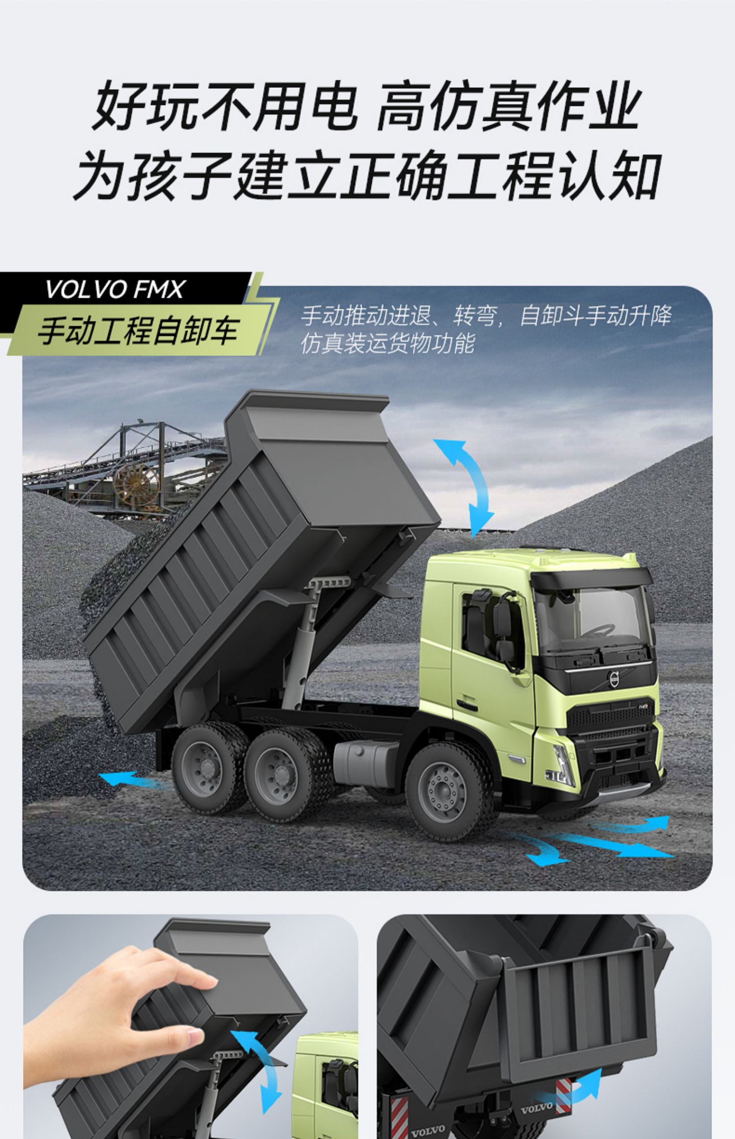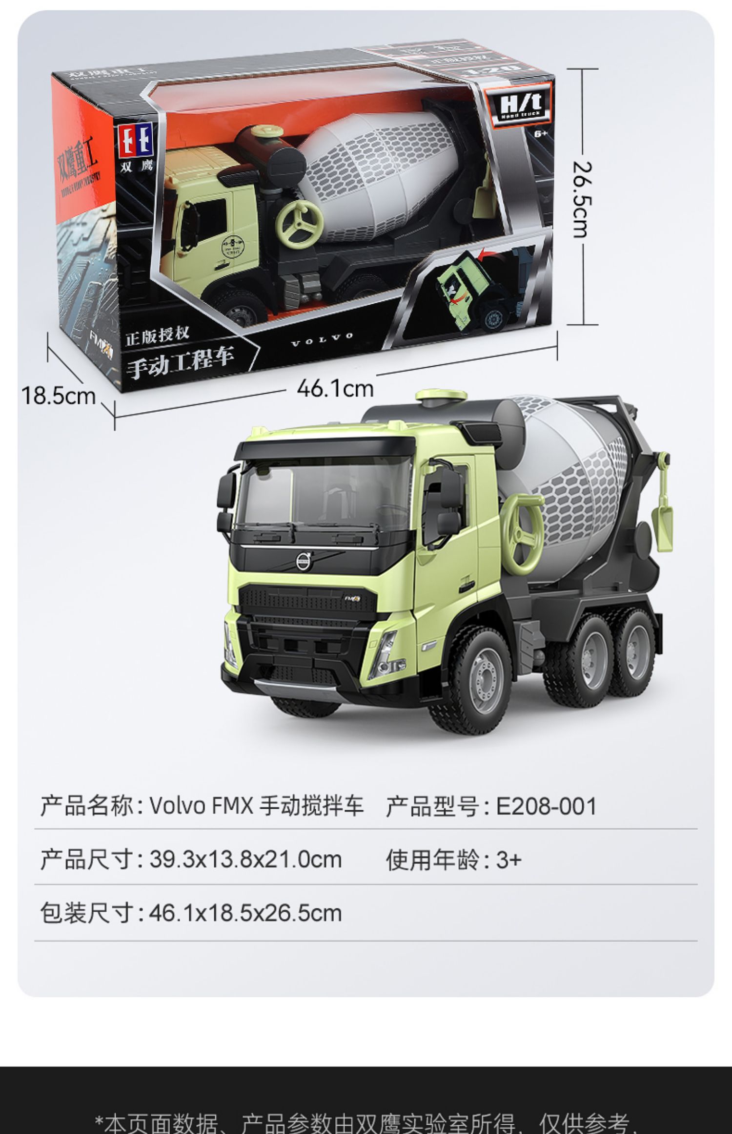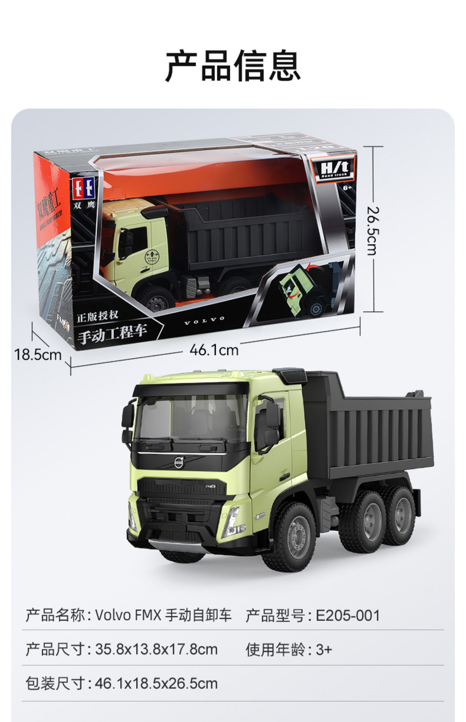 【双鹰】VOLVO FMX 手动自卸车大吊车搅拌车(1:20)正版授权玩具手动自卸车搅拌车大吊车男孩儿童礼物