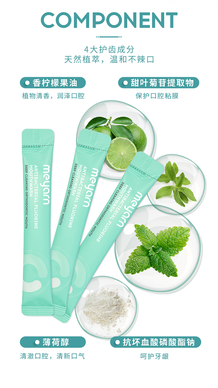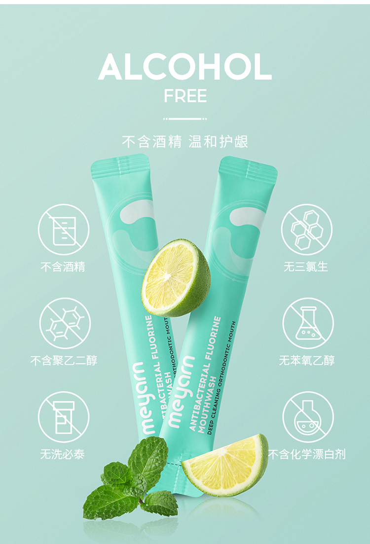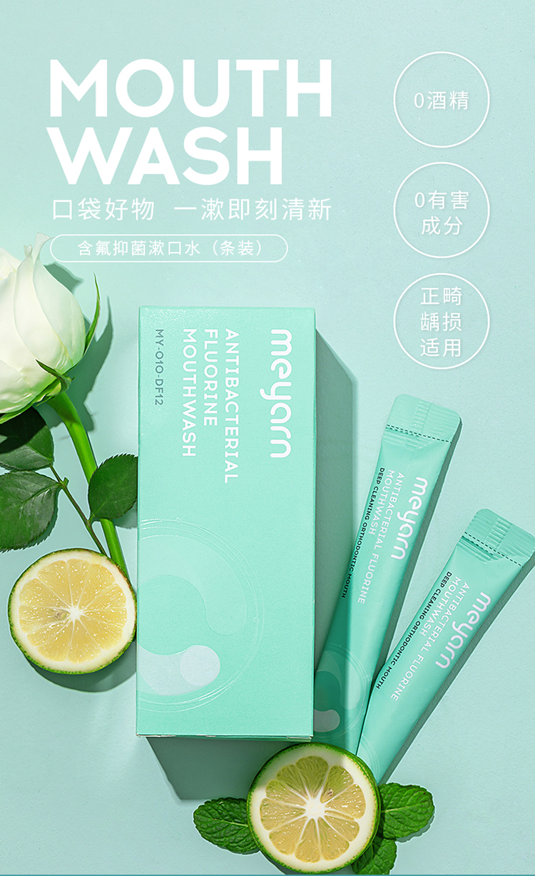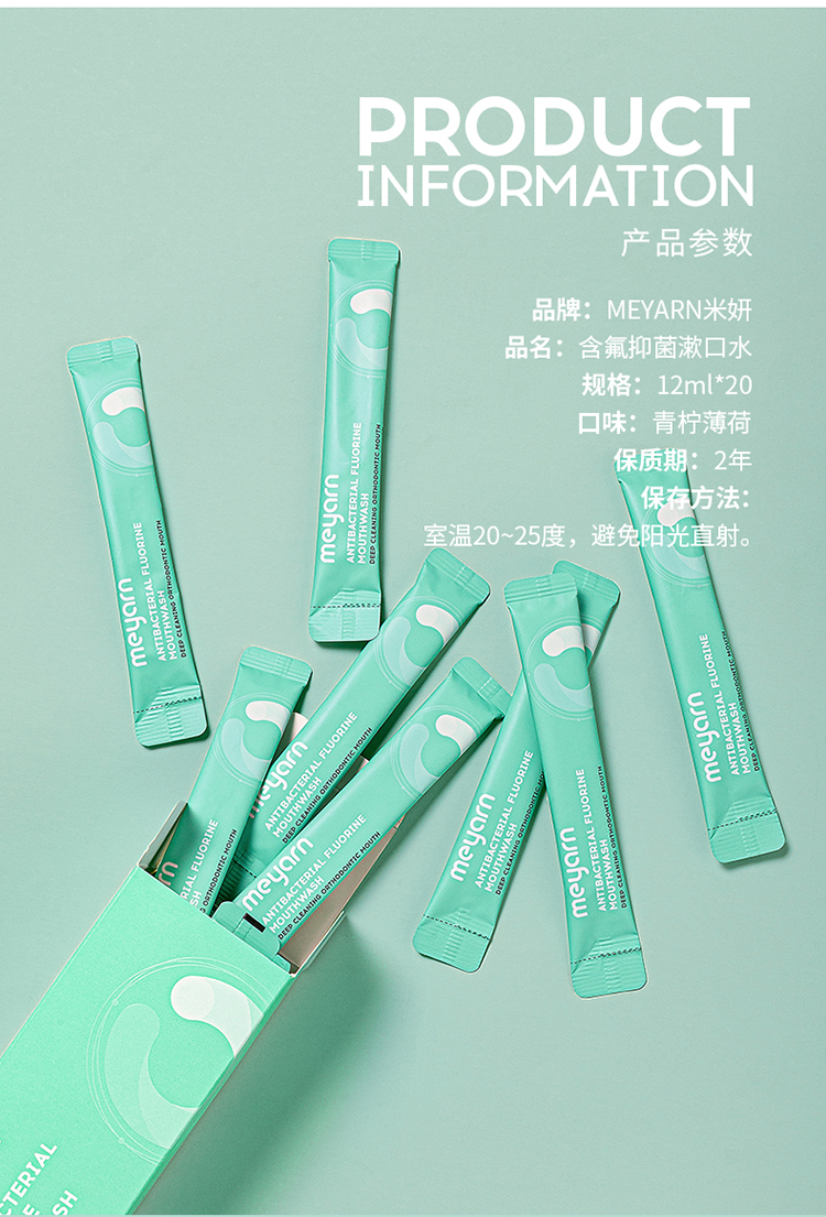 米妍(meyarn)果漾含氟漱口水12ml*20支装(青柠薄荷)