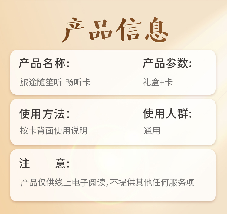 【使用方法】刮开卡片背面在 旅途随身听 小程序或者app里面 我的-会员激活码 激活会员后即可使用