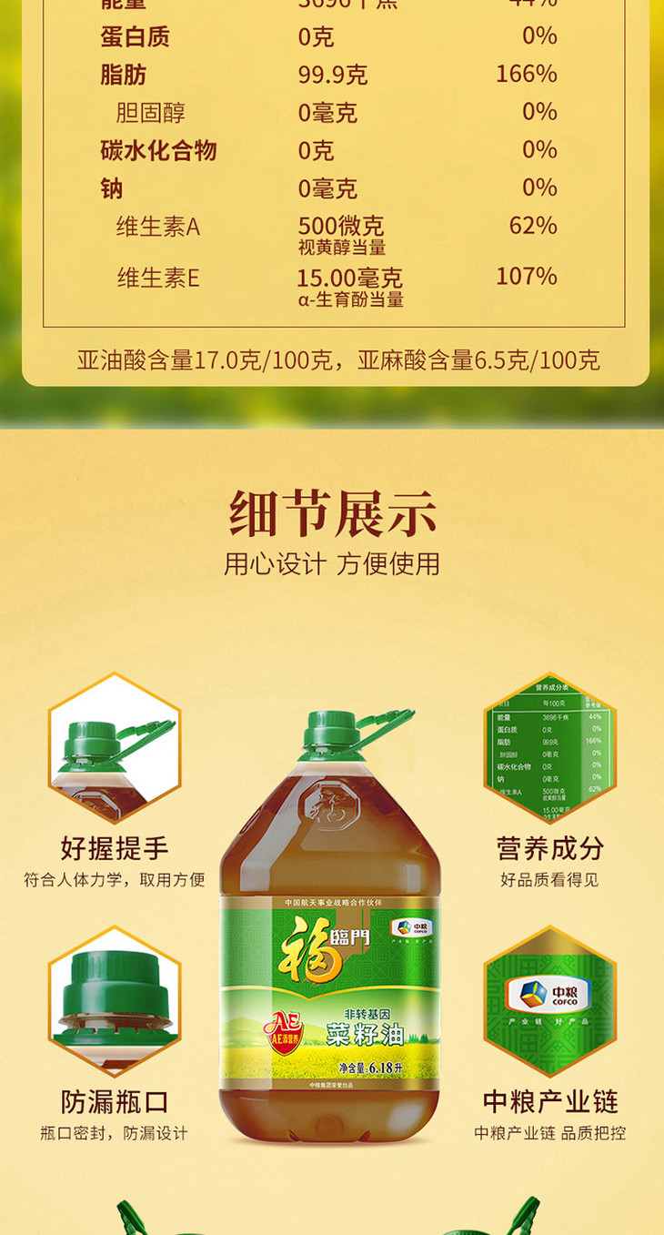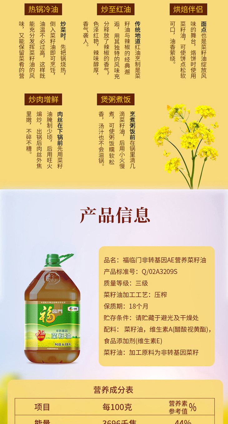福临门(非转基因)菜籽油6.18L