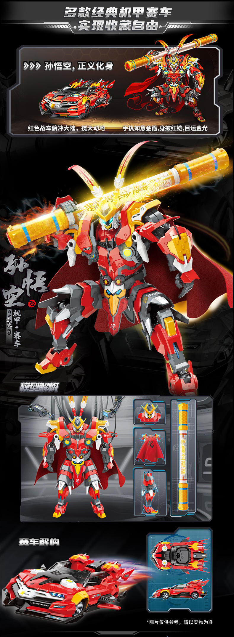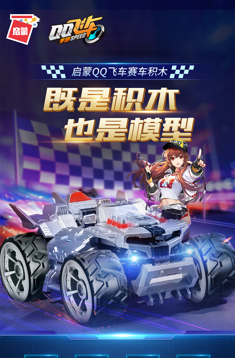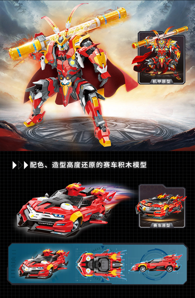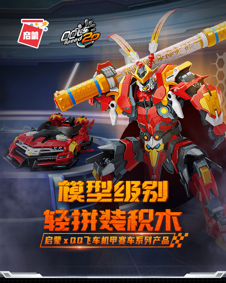启蒙积木QQ飞车拼装益智儿童男孩玩具赛车机甲齐天大圣孙悟空模型