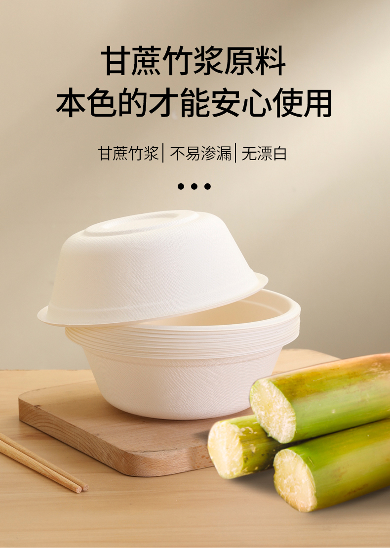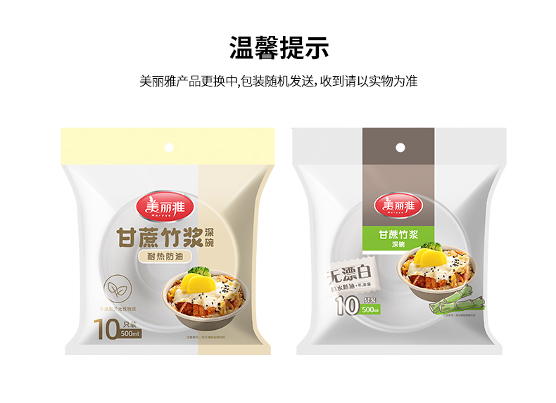 【批发】美丽雅甘蔗竹桨深碗中号 500ml/10个入