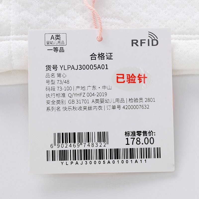 英氏婴幼儿马甲20新款秋装男女宝宝夹棉背心居家服YLPAJ30005A01