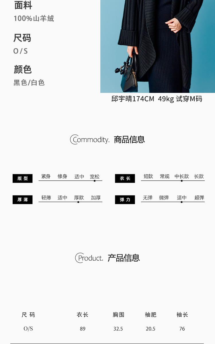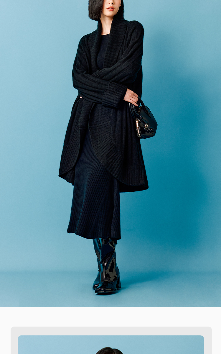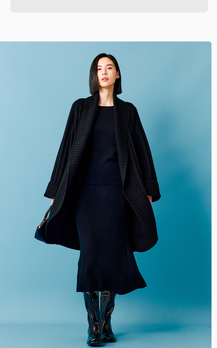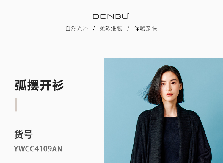 东黎 • 秀场同款 山羊绒女士秋冬清影简尚弧摆开衫 4109