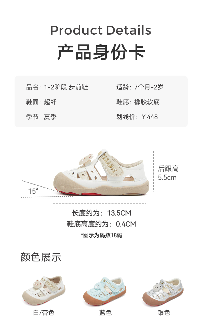 泰兰尼斯101童鞋夏季新款步前鞋透气男女童婴儿赤足鞋T24B6B8786