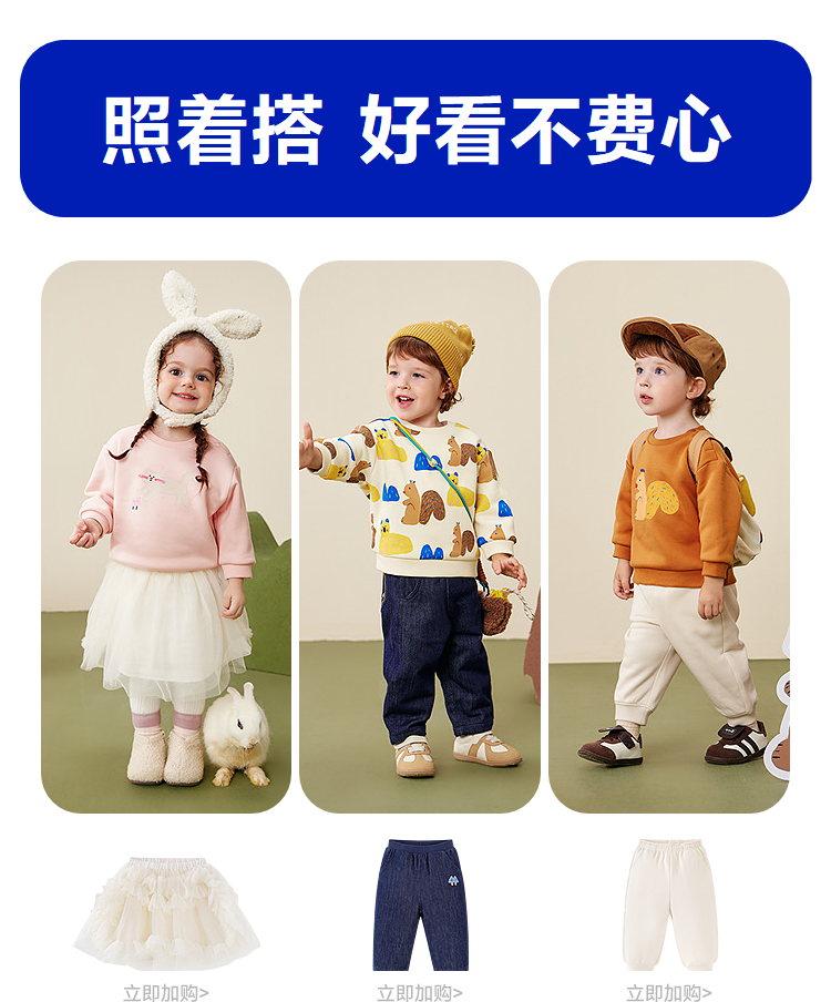 迷你巴拉卫衣婴儿男女宝宝2025冬新款远红外发热保暖加绒上衣★