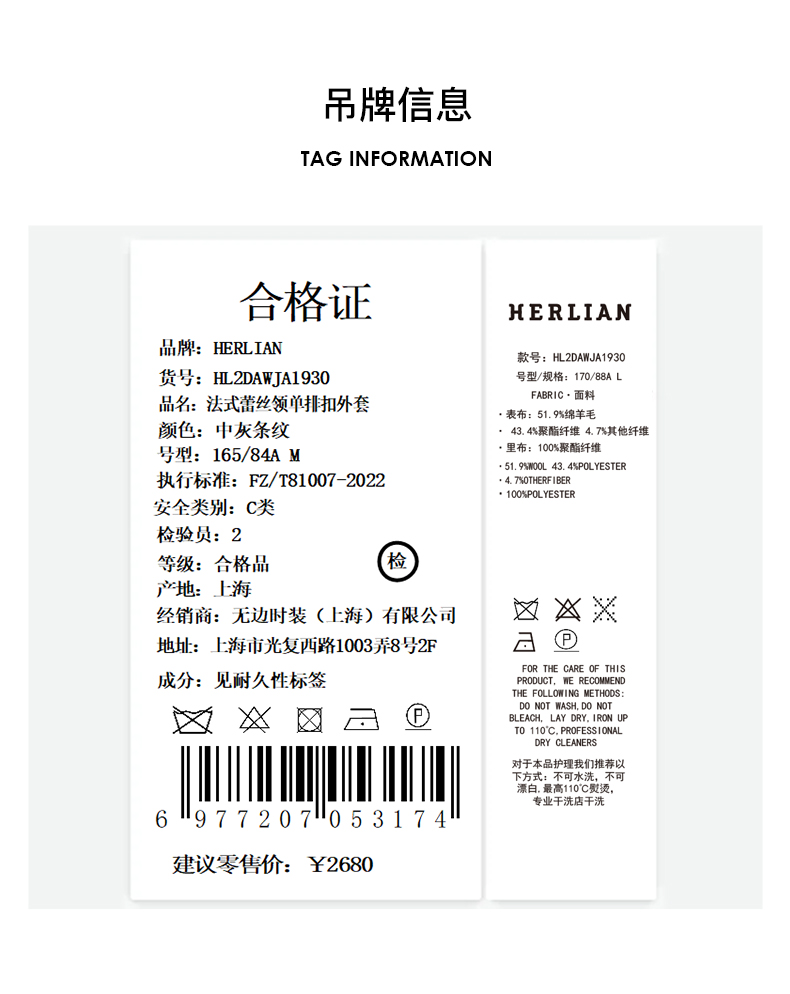 HL2DAWJA1930 法式蕾丝领单排扣外套