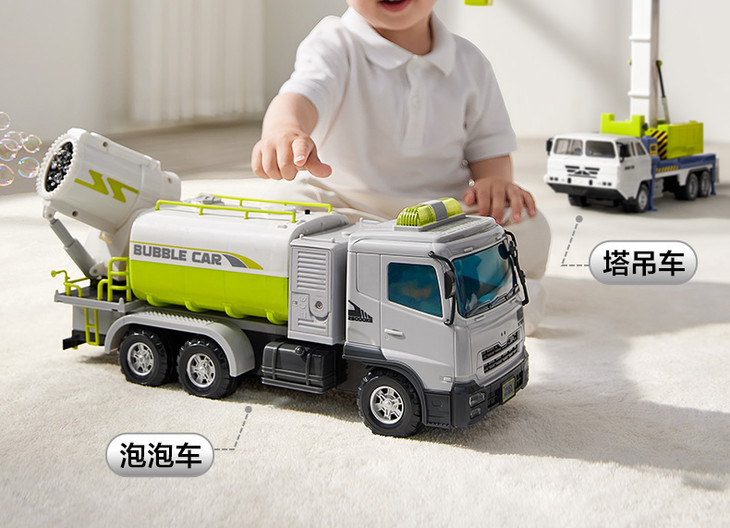 【babycare好物集】工程车塔吊模型电动泡泡机小男孩多功能儿童玩具惯性汽车