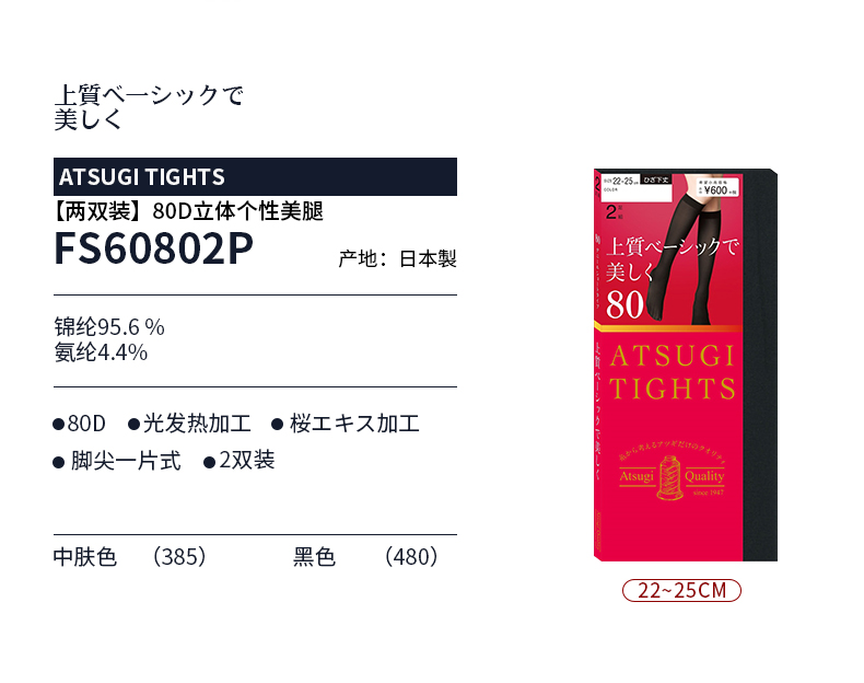 日本ATSUGI / 厚木美60D吸湿发热连裤袜6161