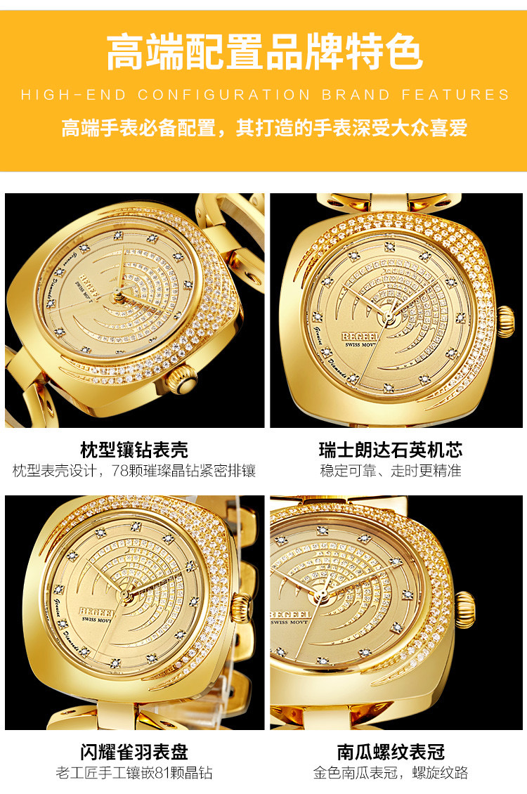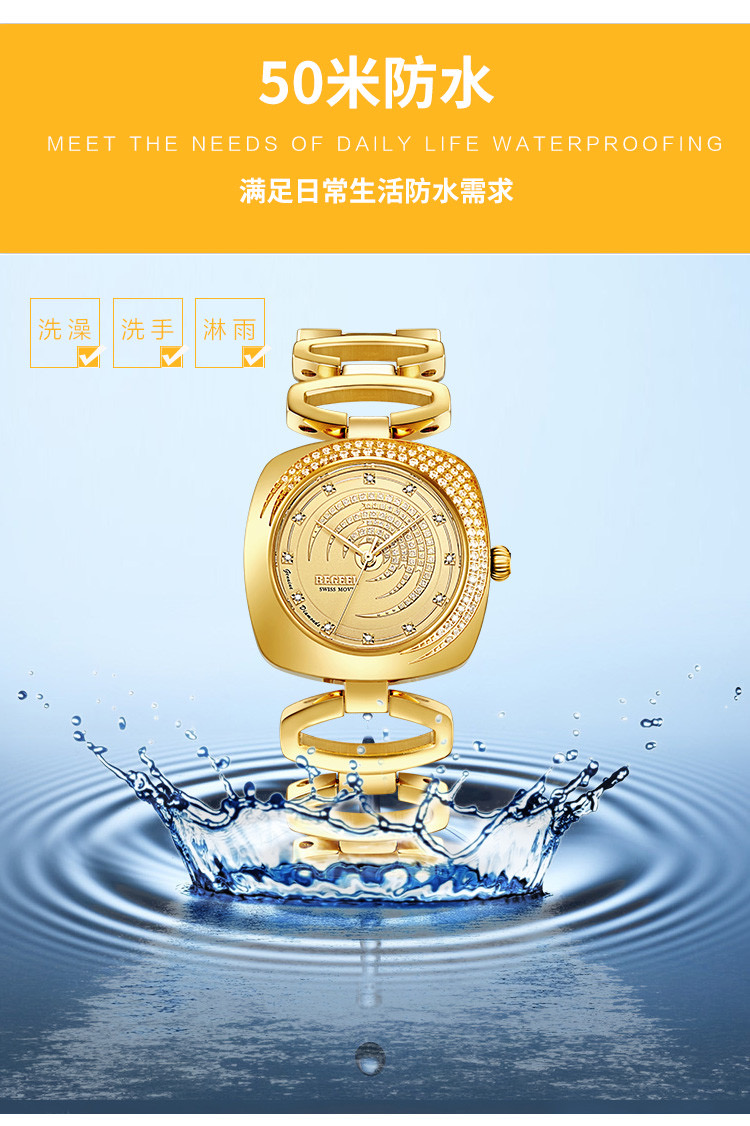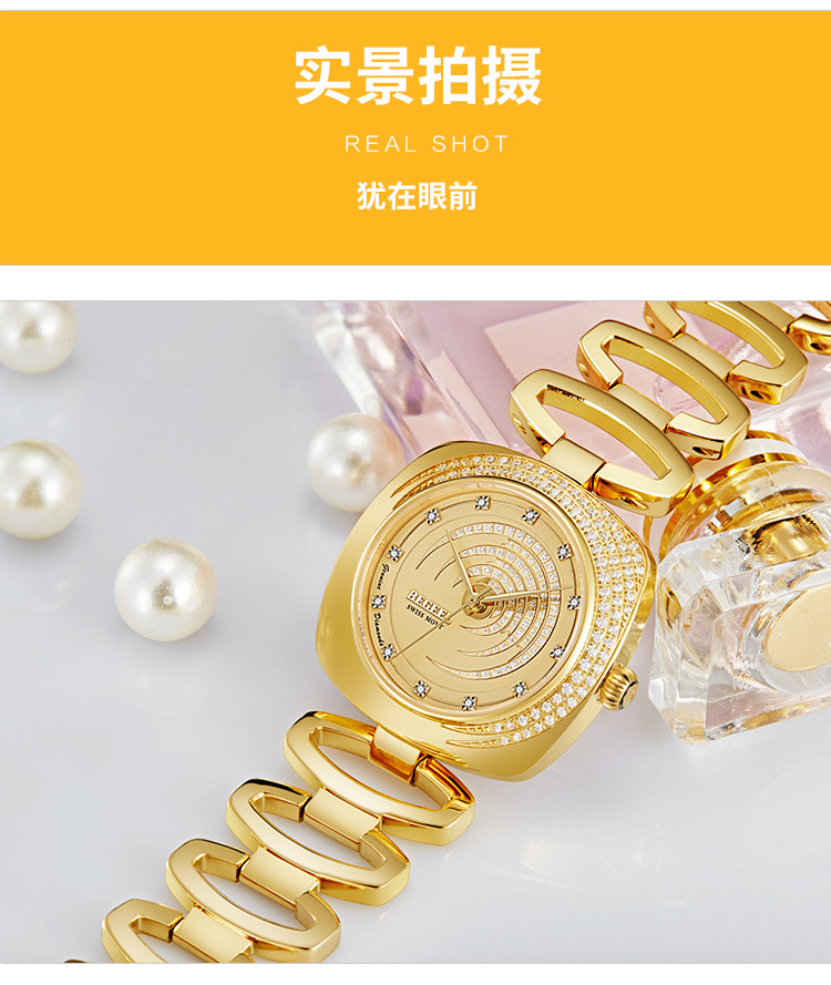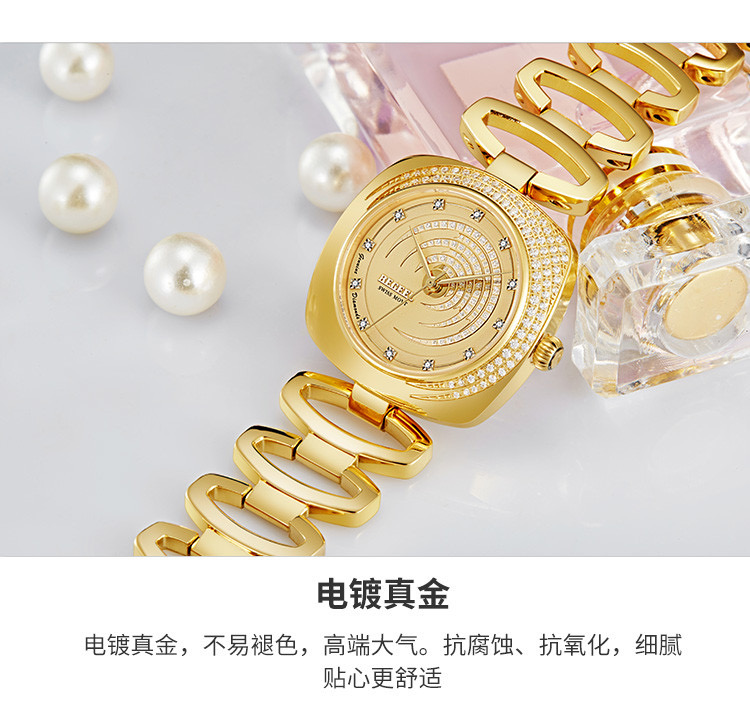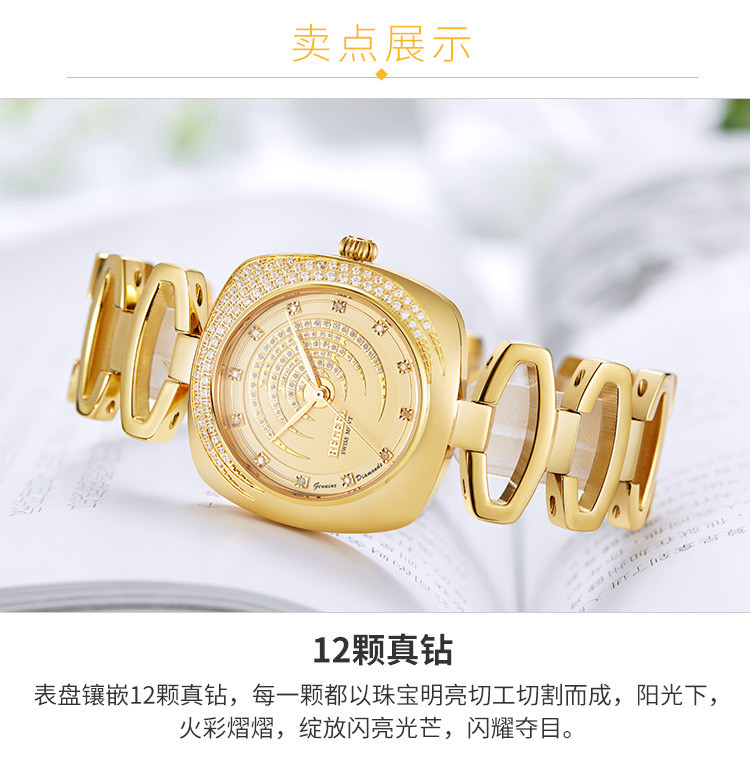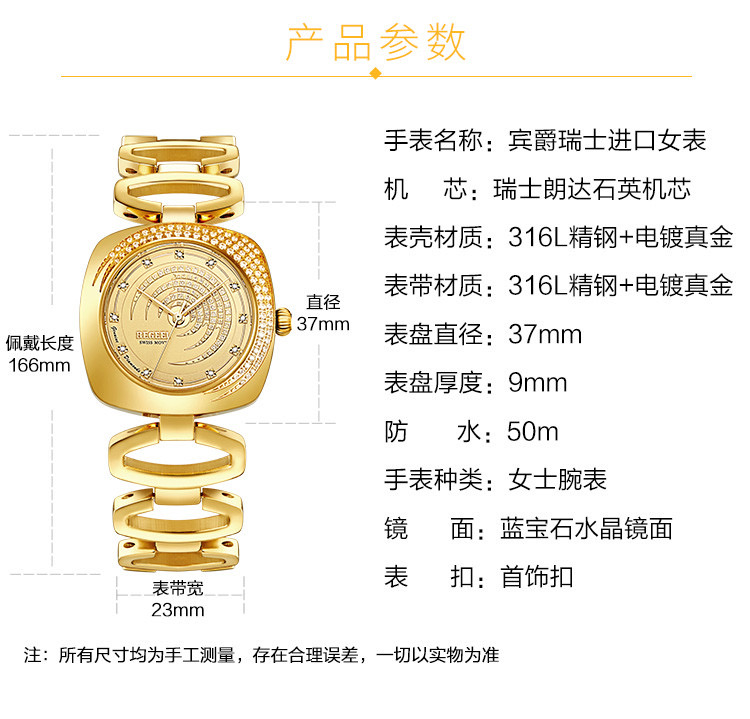 【授权产品】宾爵瑞士原装进口手表镶真钻女士手表奢华镀金女表手链型石英表