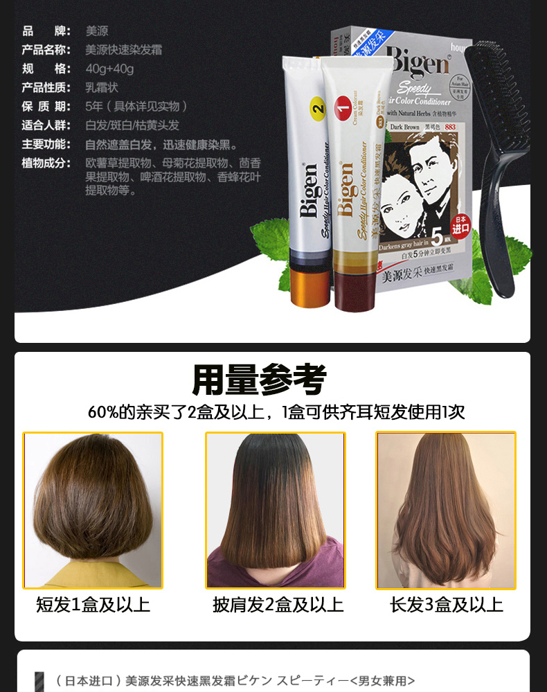 美源发采快速黑发霜 速染遮白发植物配方 110472/110473/110474/110475
