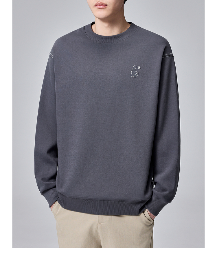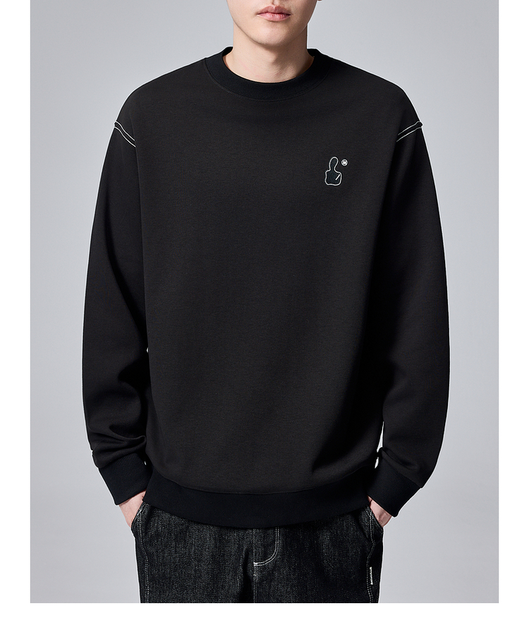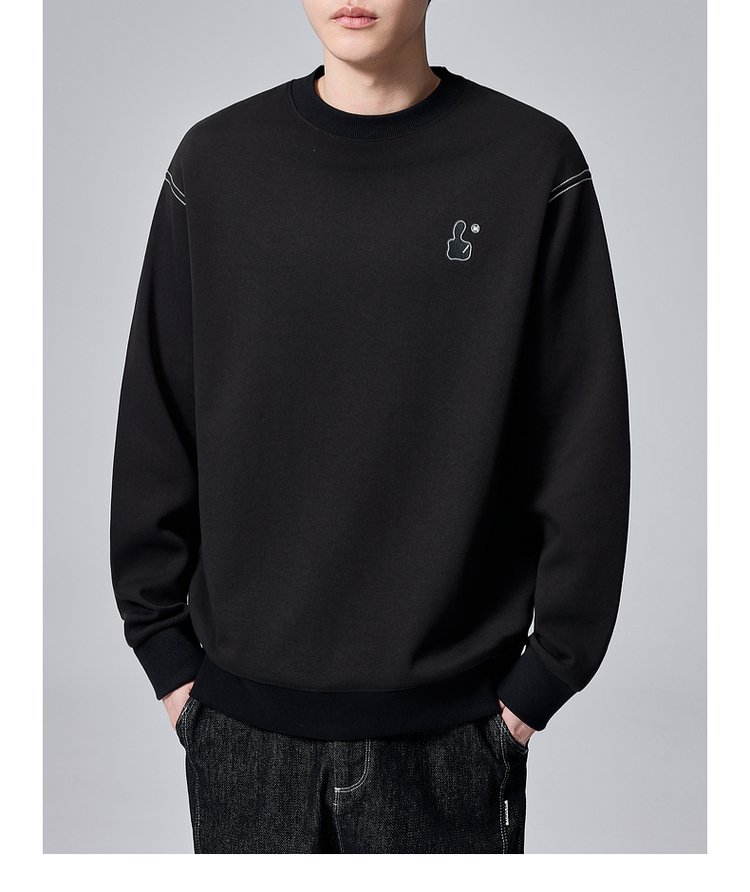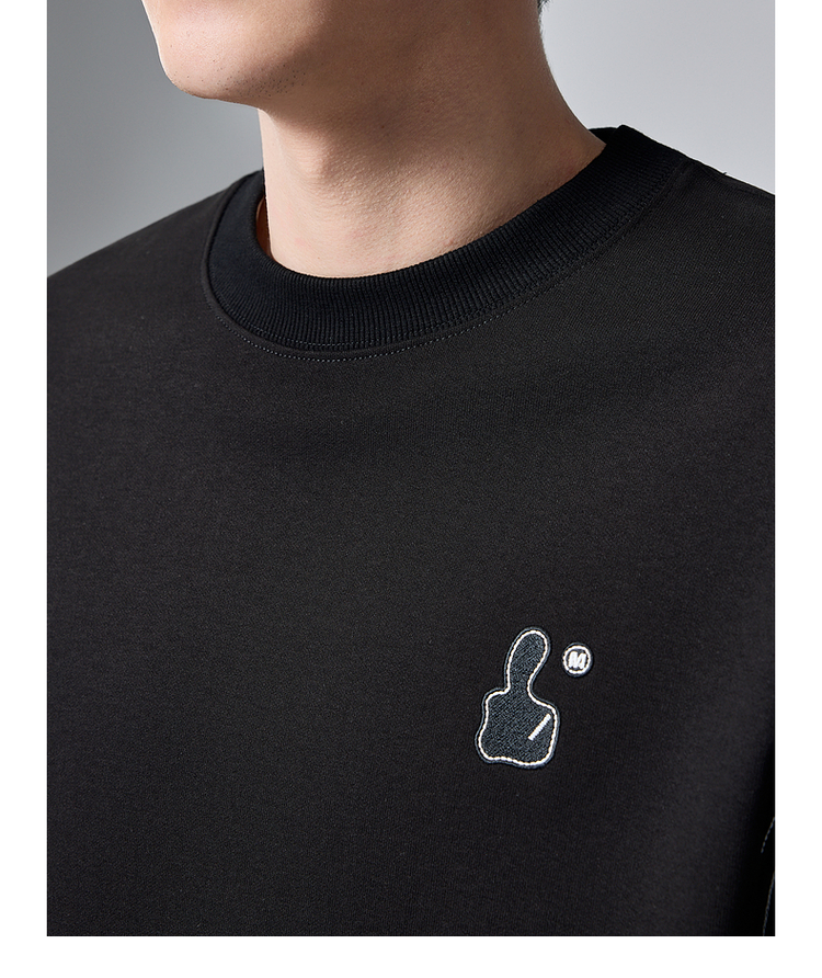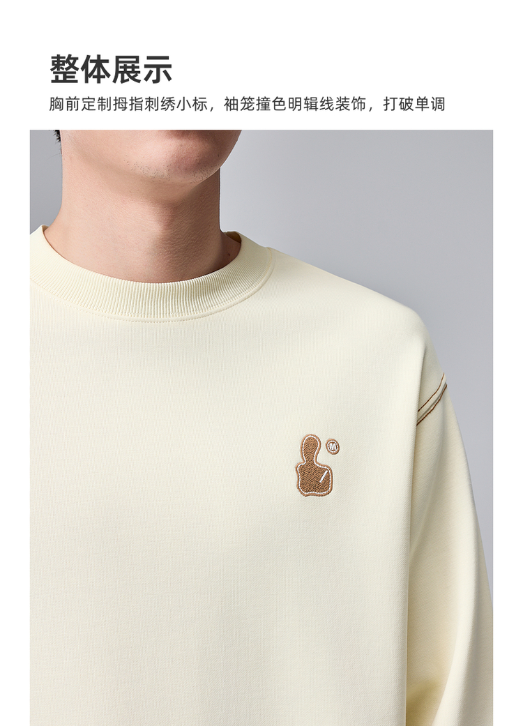 墨麦客男装拇指刺绣男士休闲圆领卫衣2024秋季新款重磅宽松上衣。