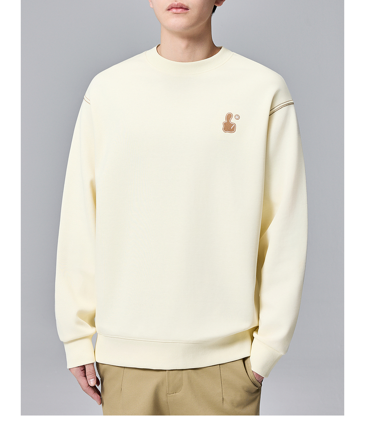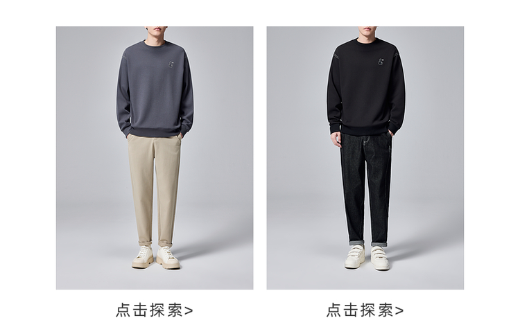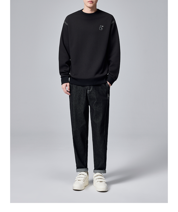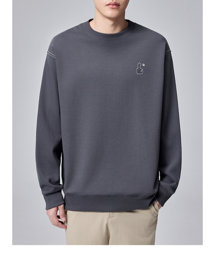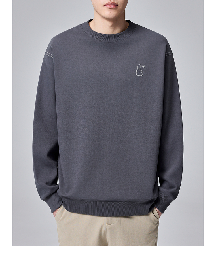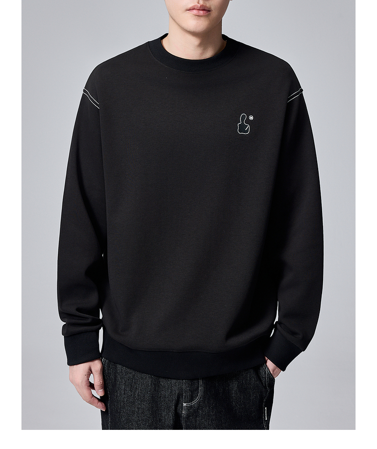 墨麦客男装拇指刺绣男士休闲圆领卫衣2024秋季新款重磅宽松上衣。