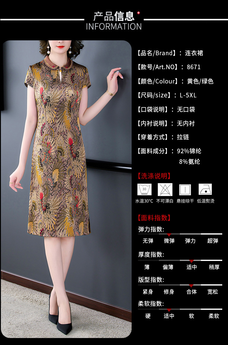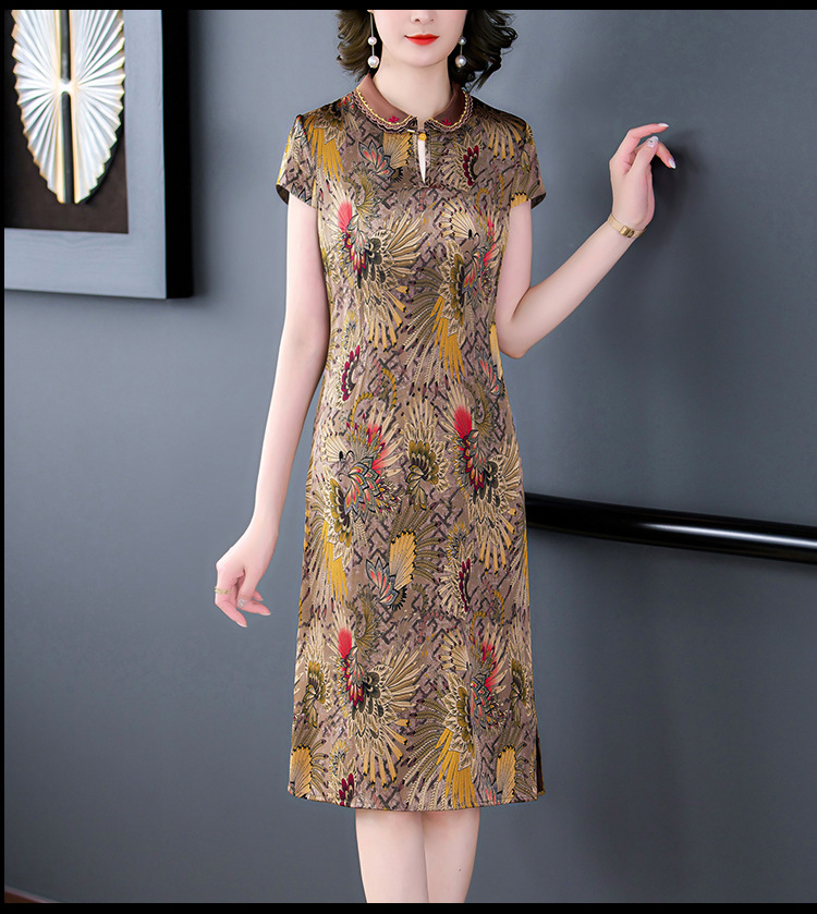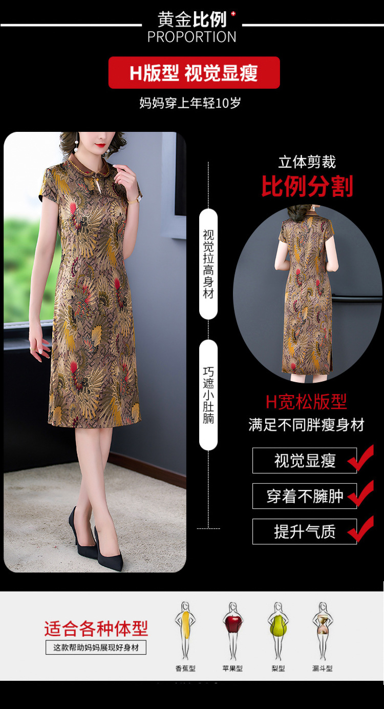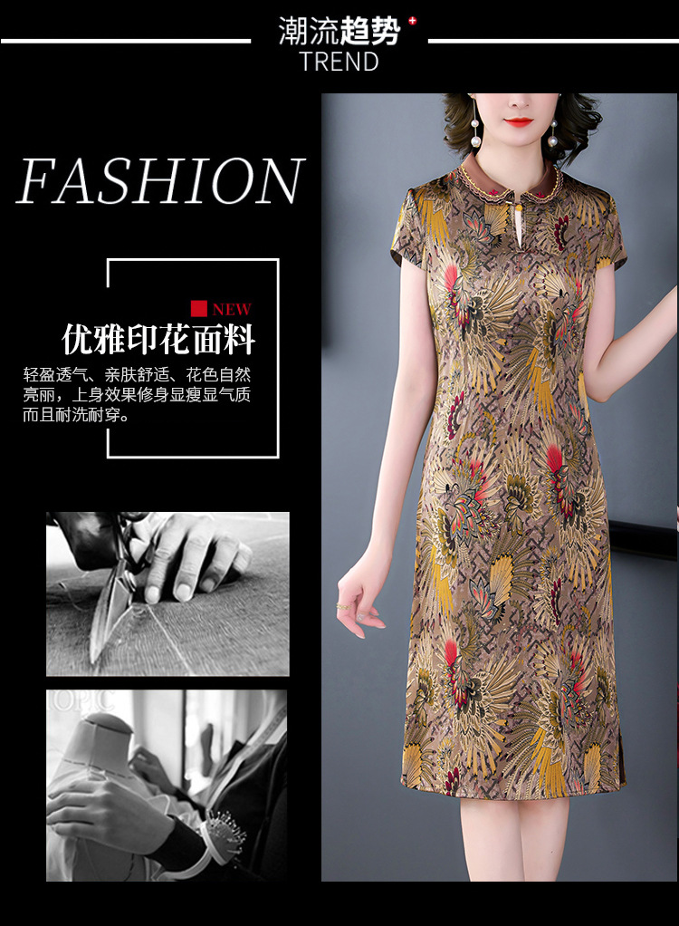 香云纱贵夫人连衣裙,中年气质改良旗袍YMR-8671