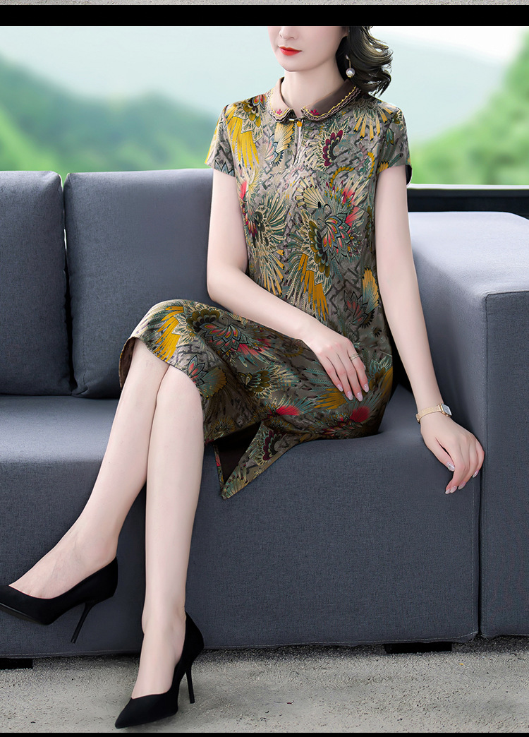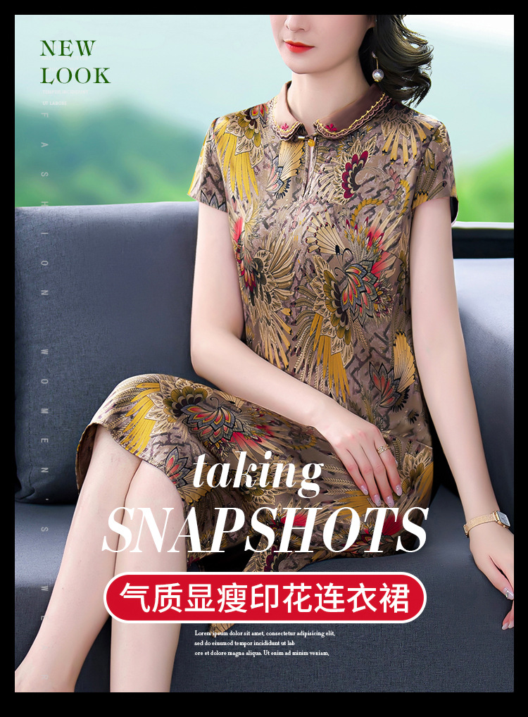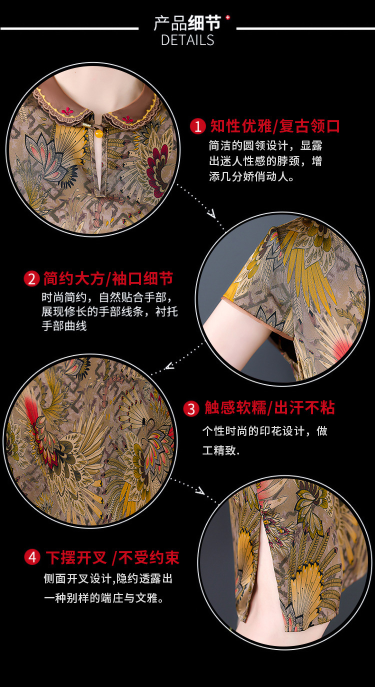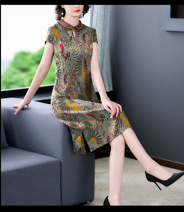 香云纱贵夫人连衣裙,中年气质改良旗袍YMR-8671