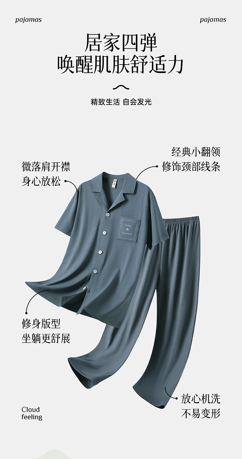 100%棉全棉纯色家居服套装纯棉长裤开衫 A-4387 芬腾