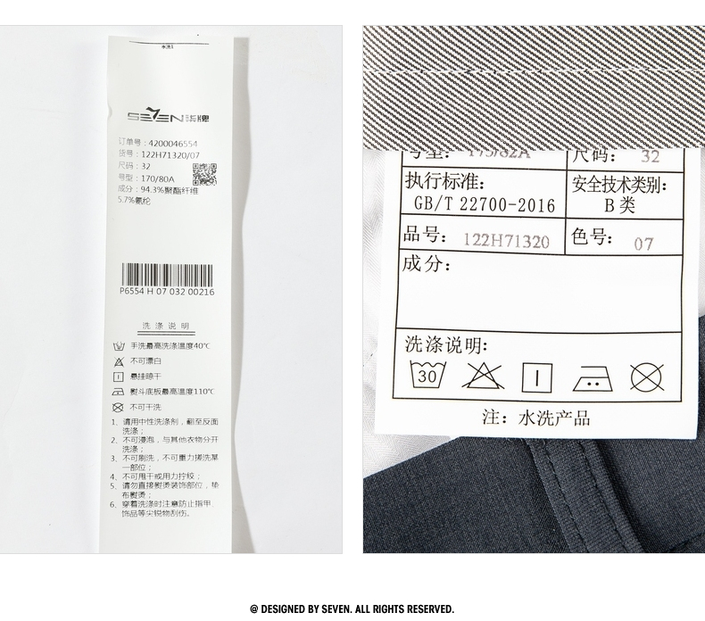【特价】柒牌西裤男商务正装时尚百搭直筒长裤混纺西装男裤子122H71321