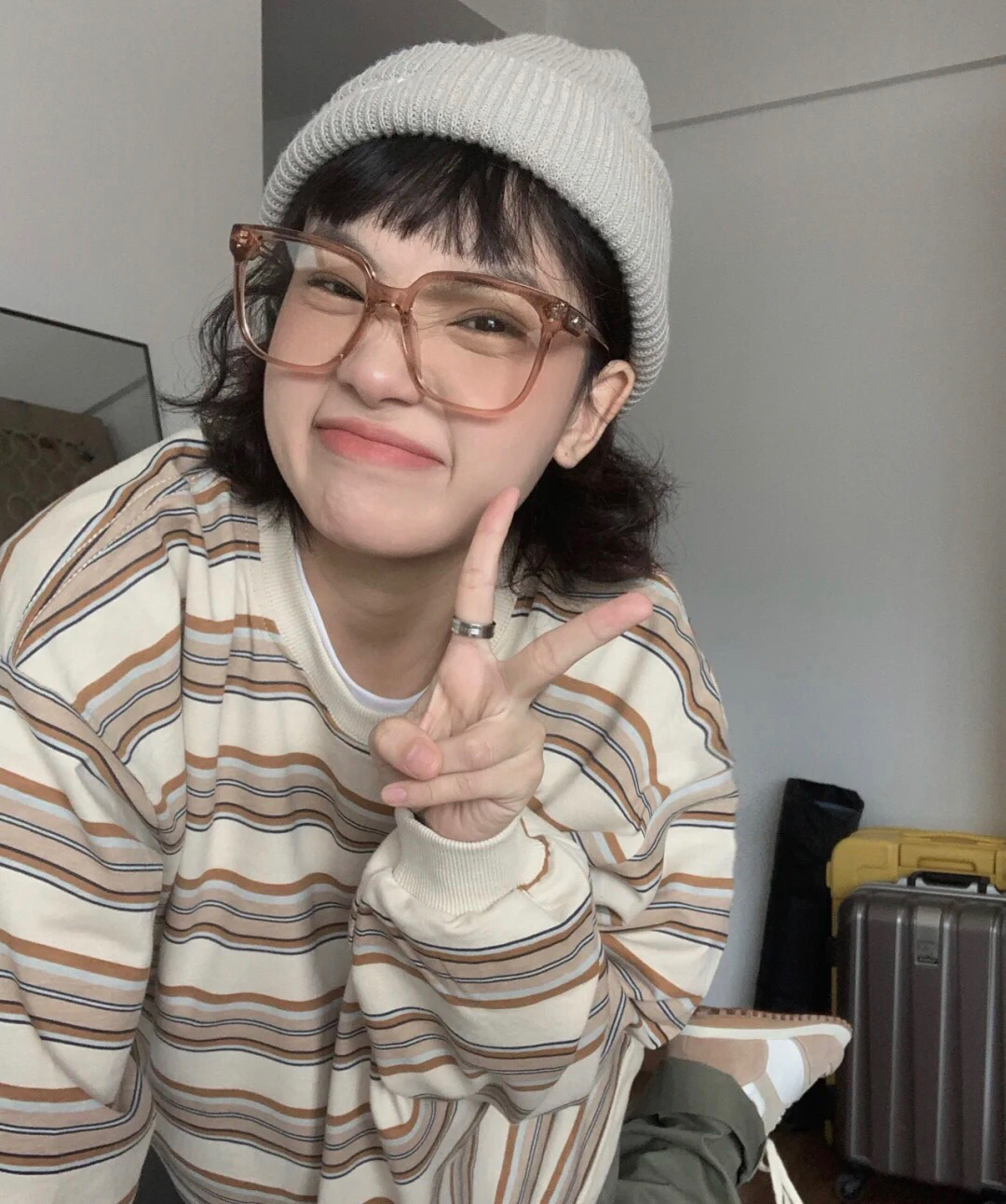 如果你们选黑框淡橘粉的镜片呢,既可以做素颜镜框,又可以做浅色镜片的墨镜,文艺摩登的味道,一下子出来啦。Size:55-18-153,大方框,整体宽14.7cm,大脸圆领狠ok,脸盘不是很大的男士也合适。