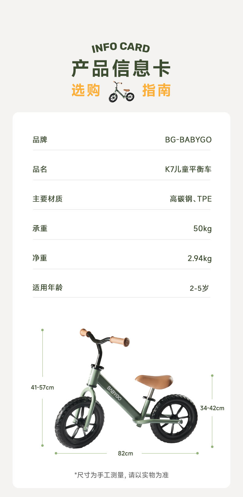 【BG】BABYGO儿童K7平衡车2-5岁滑行滑步车小童学步车自行车入门童车