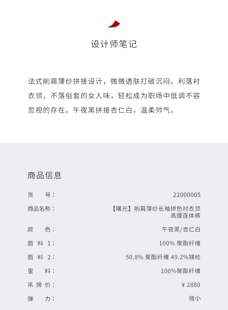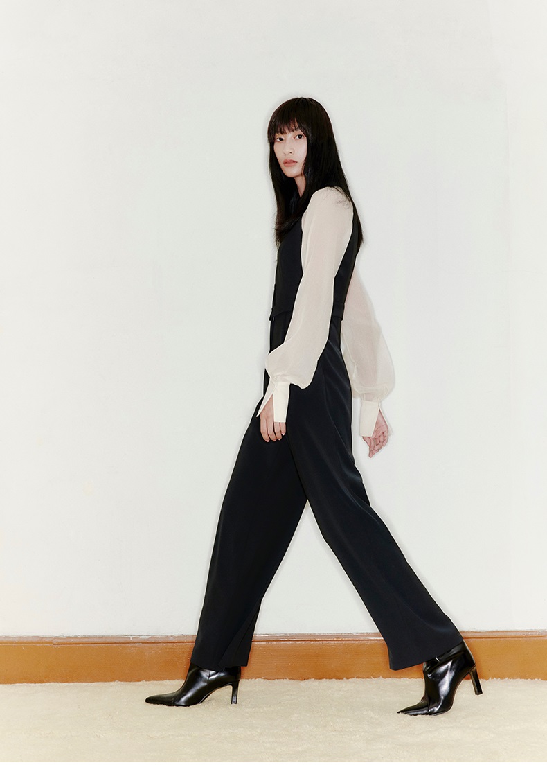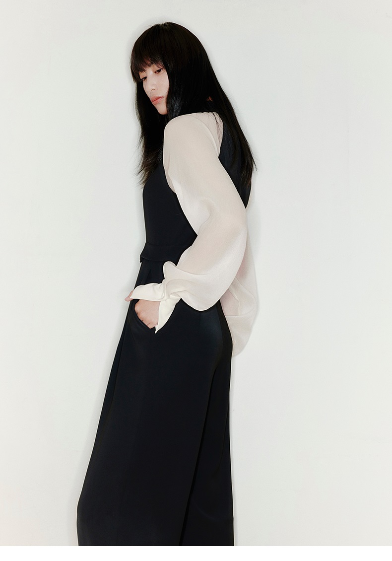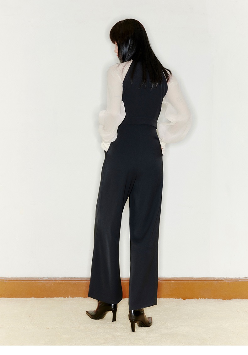 【曙光】削肩薄纱长袖拼色衬衣领高腰连体裤/22000005
