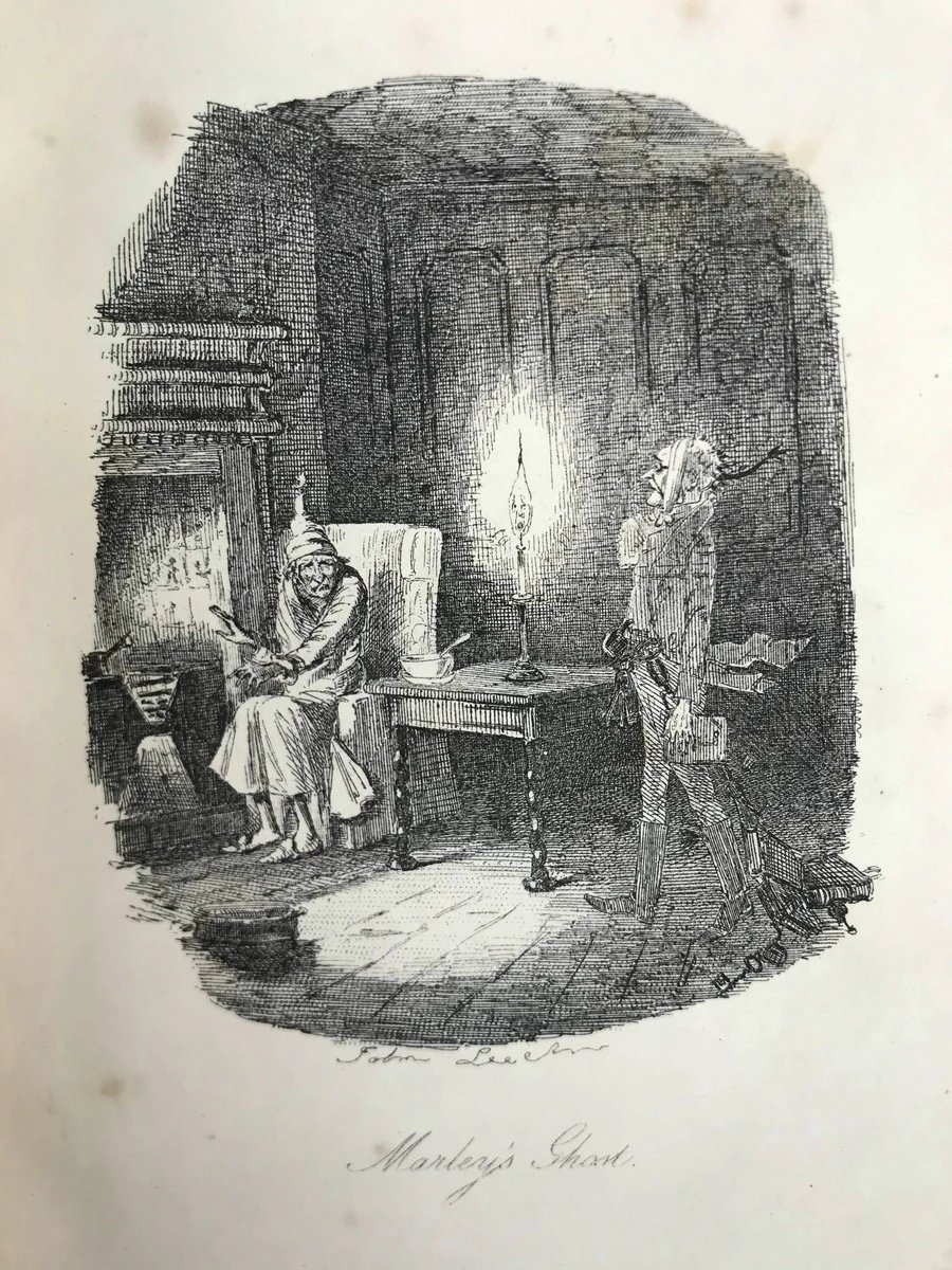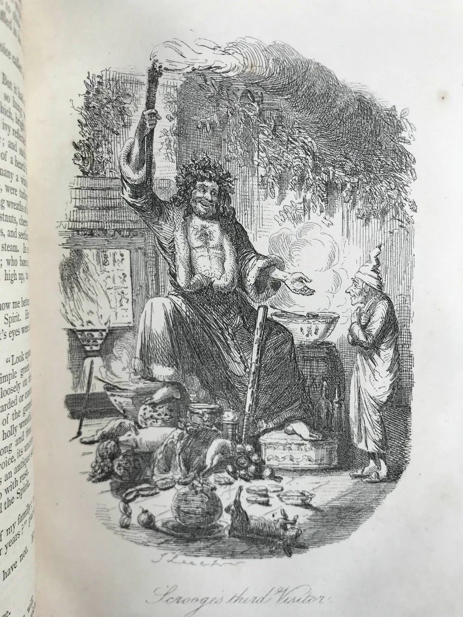 约19世纪后期 狄更斯《圣诞之书》 8幅插图 真皮精装36开