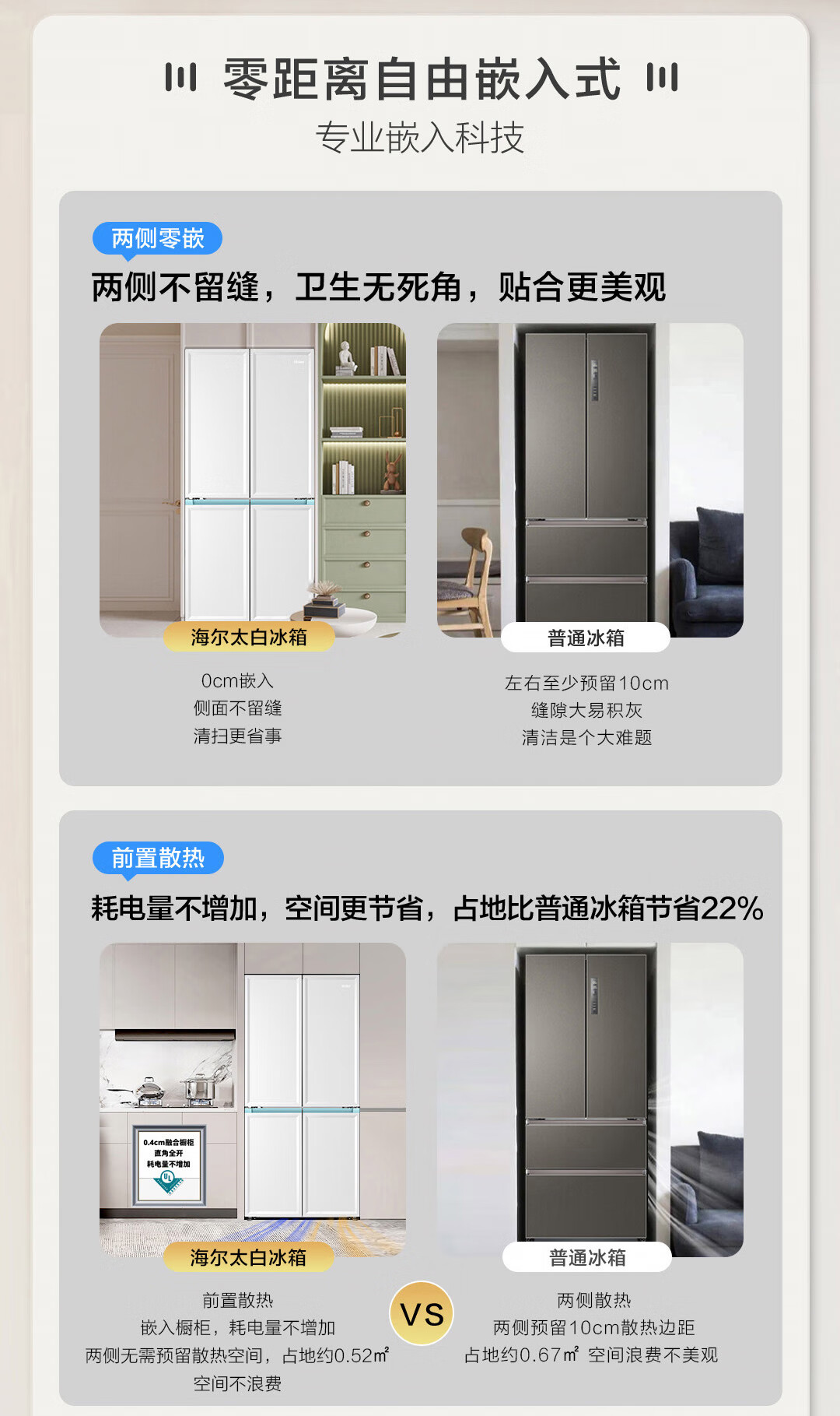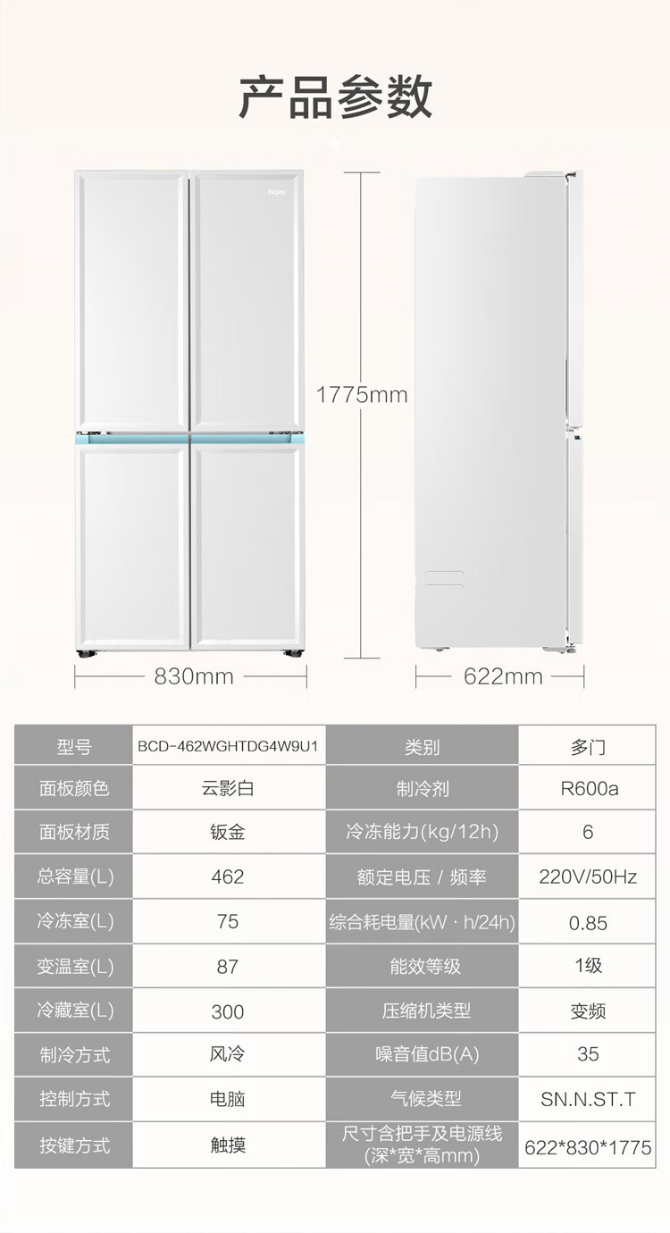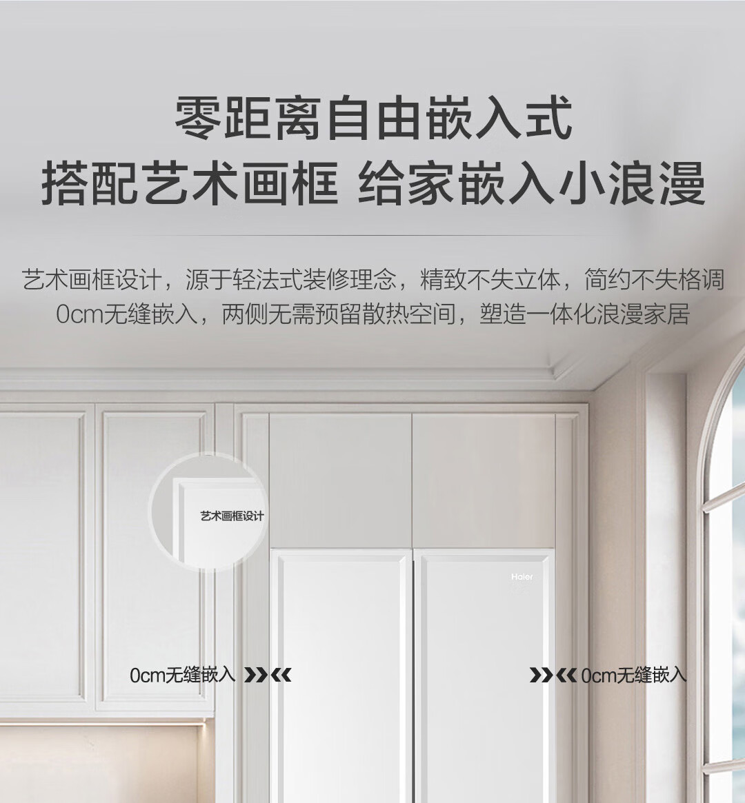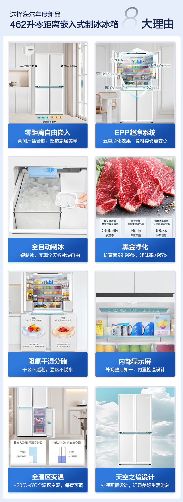 海尔(Haier)全自动制冰冰箱 462升家用零距离嵌入式双对开四门门白巧太白系列零嵌冰箱EPP超净净化 462升+零距离嵌入+全自动制冰+EPP超净系统