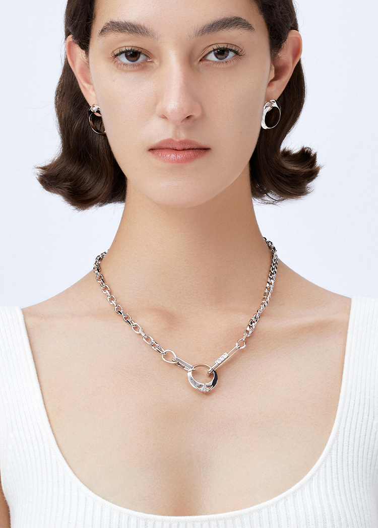 [福利价]lost in echo2024秋季新款膨胀蝴蝶结枕头双层银色chocker项链女