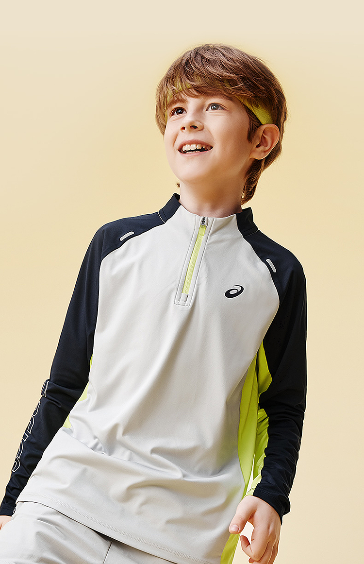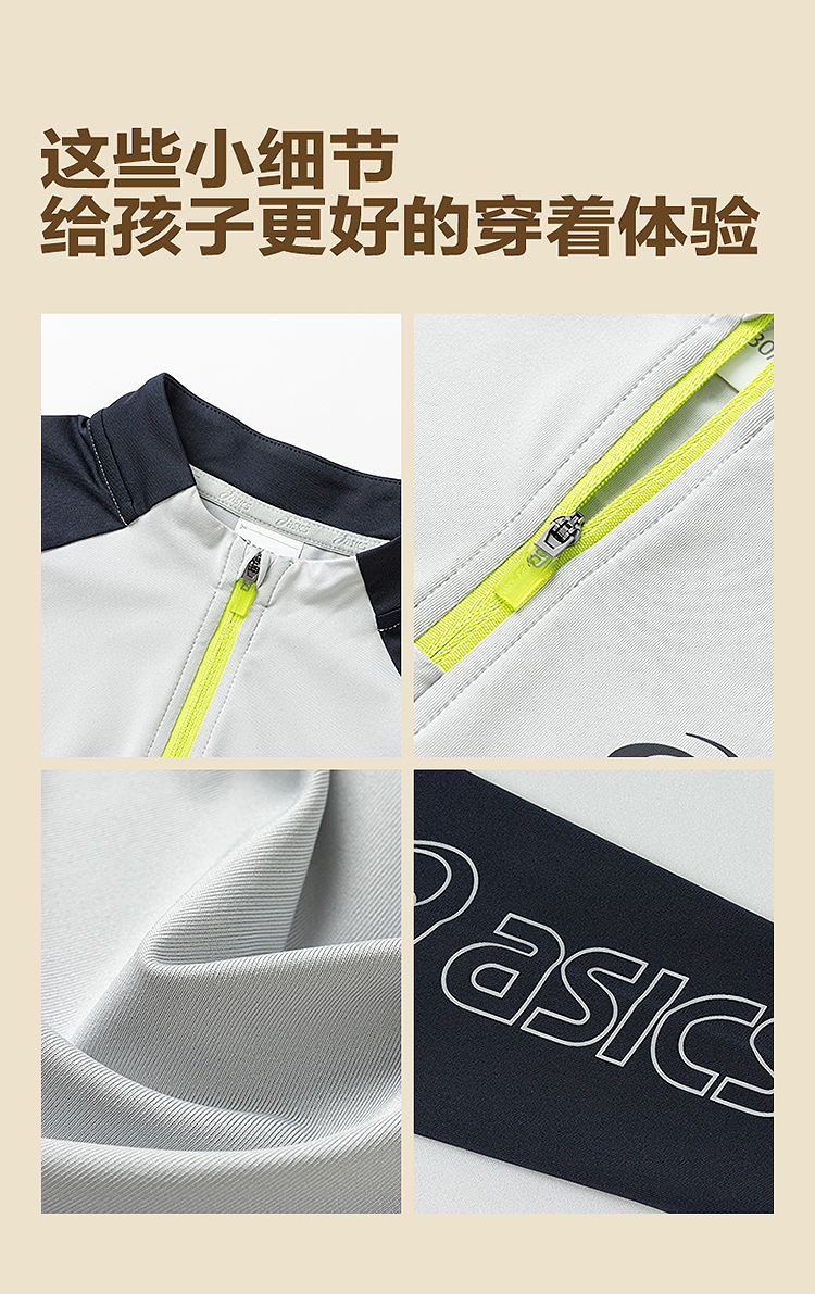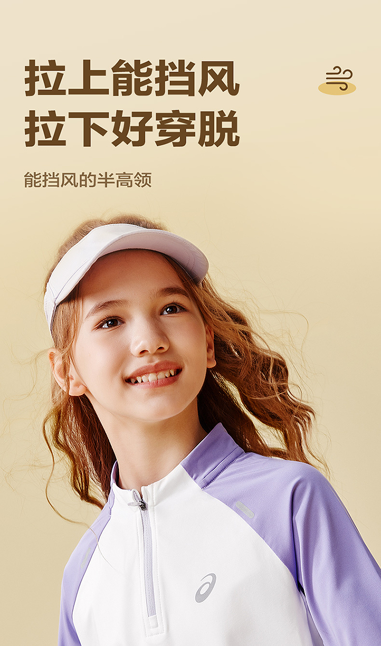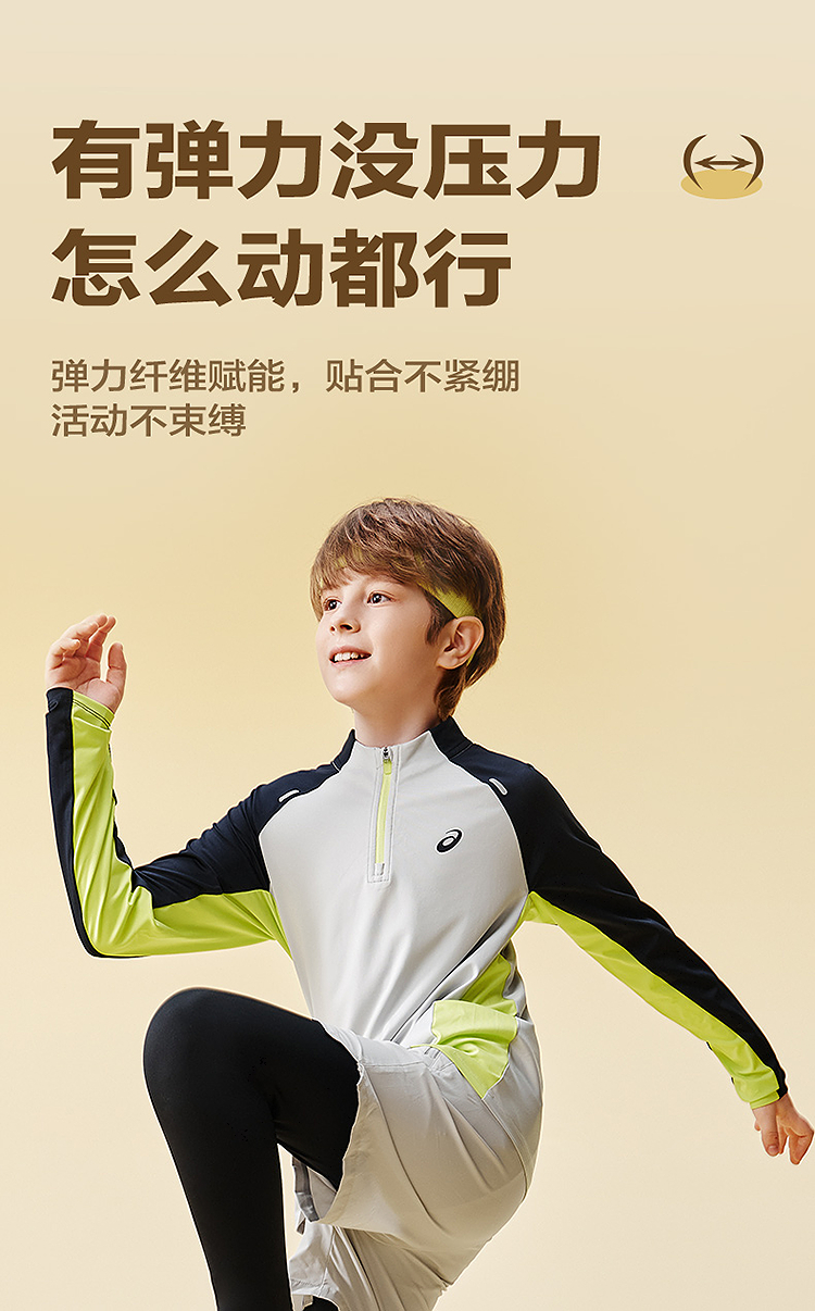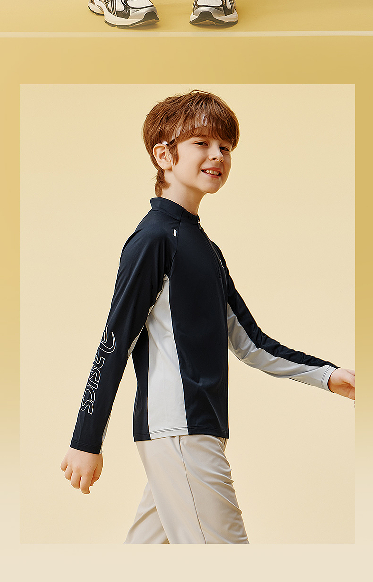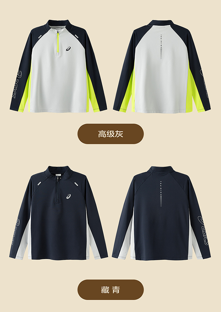 ASICS/亚瑟士童装25年秋季新款拉链拼色针织T恤吸湿速干弹力保暖
