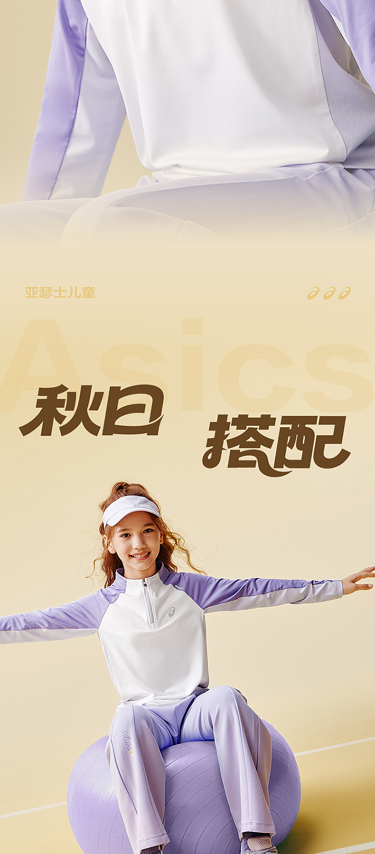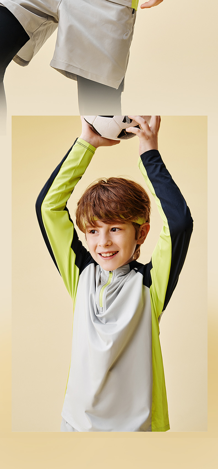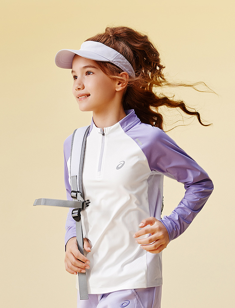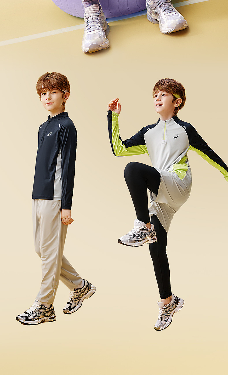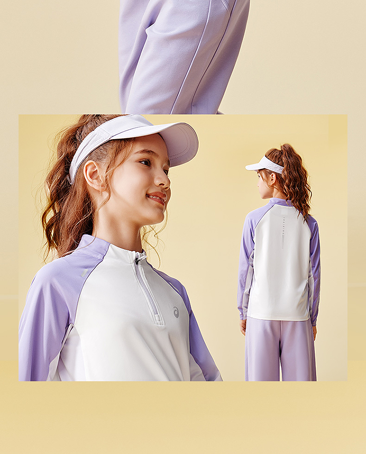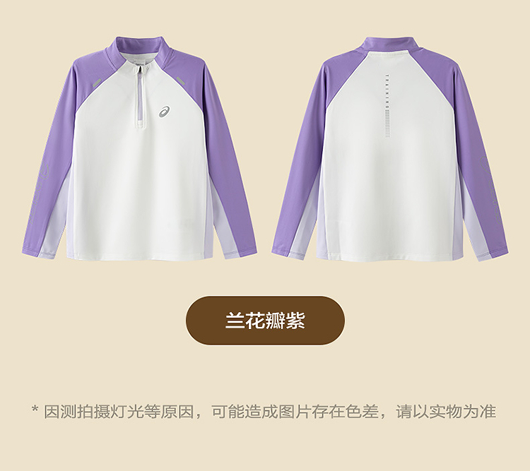ASICS/亚瑟士童装25年秋季新款拉链拼色针织T恤吸湿速干弹力保暖