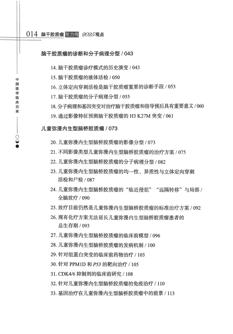 脑干胶质瘤张力伟2025观点 中国医学临床百家 张力伟著 脑干胶质瘤影像学发展的回顾与展望 9787523531518科学技术文献出版社