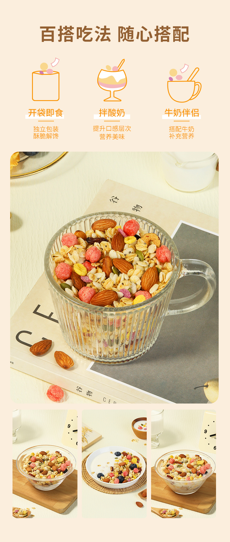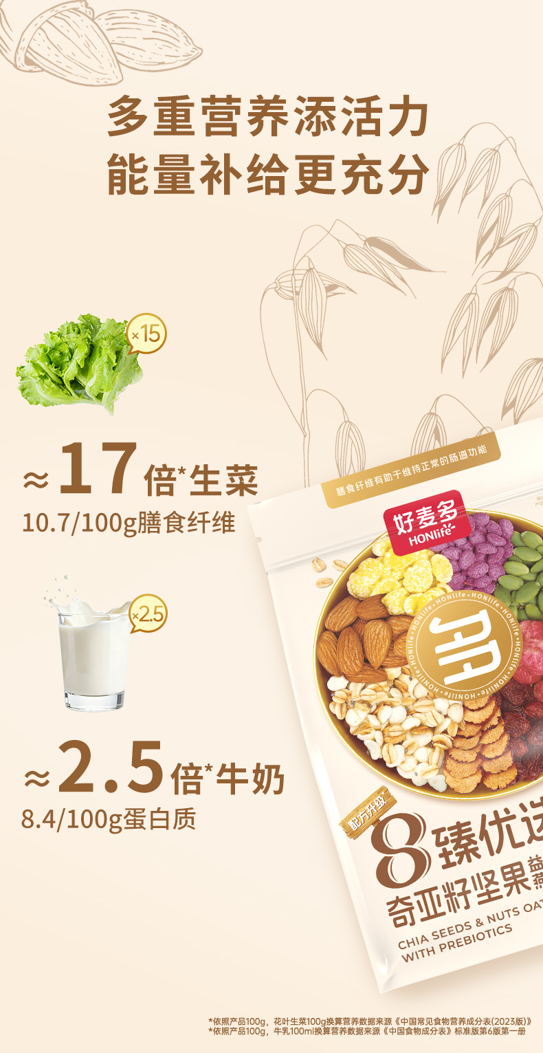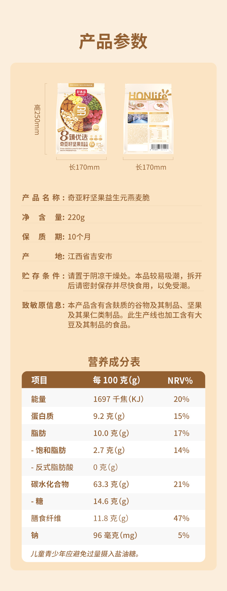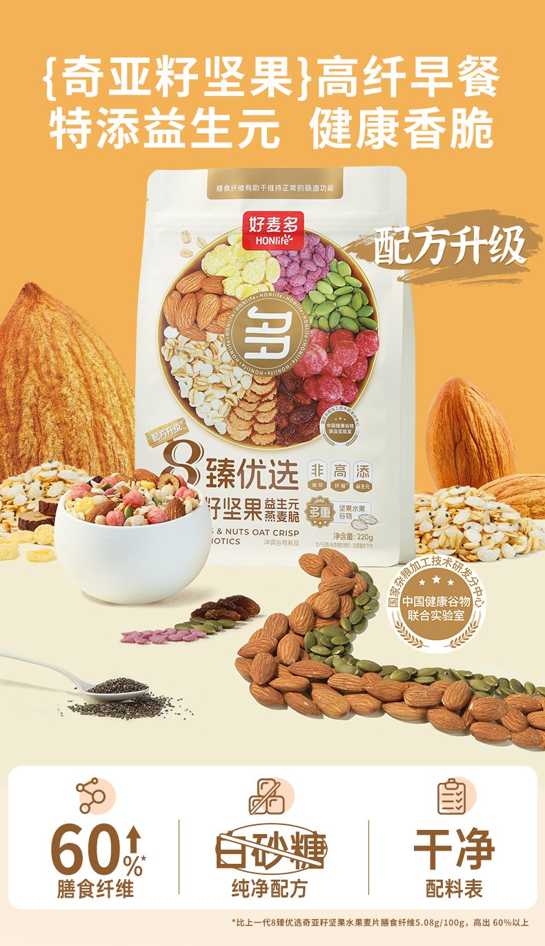 好麦多 益生元燕麦脆(酸奶莓莓1+奇亚籽坚果1)220g*2