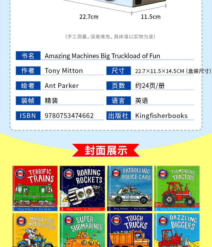 【宝莉爹书单·3-8岁】英文原版 神奇的机器 Amazing Machines Big Truckload of Fun 盒装14册 精装全彩图画书 消防车 飞机 火箭 交通工具科普绘本 赠10册音频